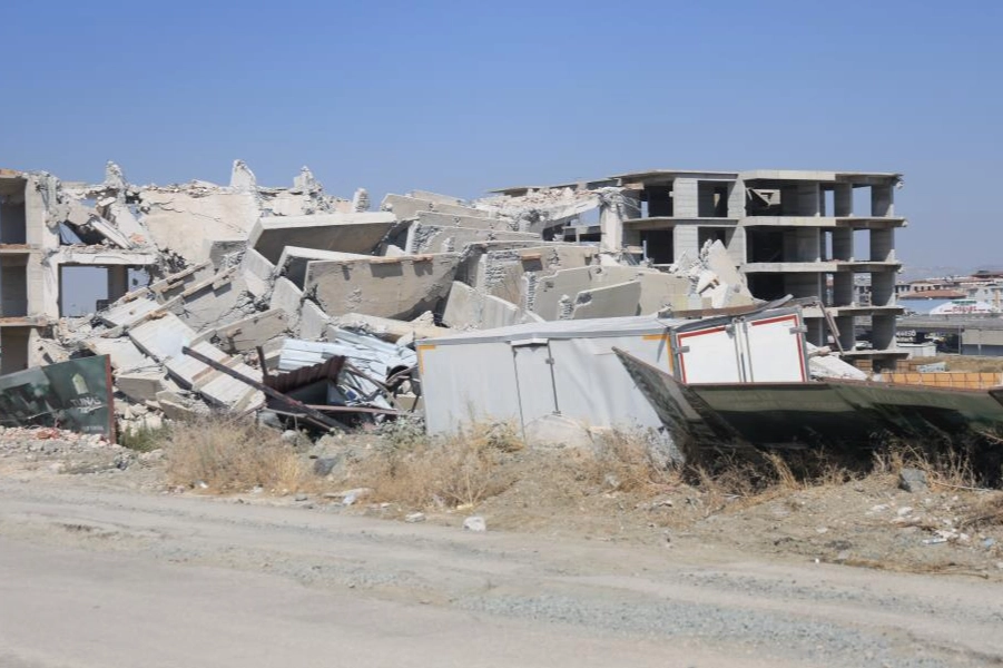 Hatay'ın Antakya ilçesinde 12 katlı binanın iş makinesinin darbesiyle yıkımı vatandaşlara deprem etkisi yaşattı. Kontrollü olarak yıkılan binanın yerle bir olduğu anlar kameraya yansıdı.Kahramanmaraş merkezli depremlerde ağır hasar alan Hatay'da mahkeme süreci sona eren binaların yıkım ve enkaz kaldırma çalışmaları aralıksız sürüyor. Antakya ilçesi Saraycık Mahallesi'nde bulunan 12 katlı bina, iş makinesinin darbeleriyle kontrollü olarak yıkıldı. 12 katlı binanın yıkımı esnasında herhangi bir olumsuzluk yaşanmadı. Binanın yıkımı cep telefonu kamerasıyla kaydedildi.