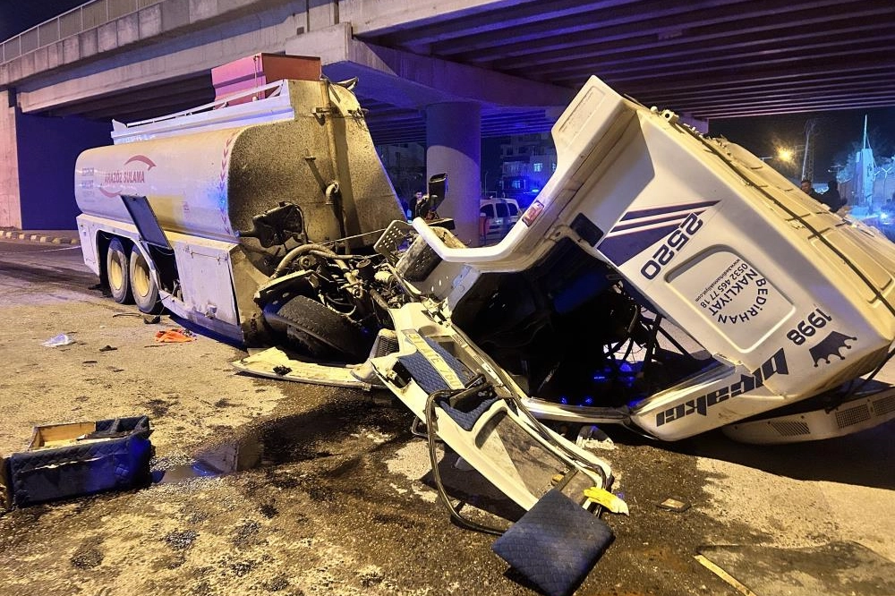 Hatay’da fren arızası sonrası duramayan arazöz, otomobile ve duvara çarparak hurdaya döndü. Hurdaya dönen arazözdeki 1 kişi öldü, 1 kişi ağır yaralandı.Kaza, İskendeurn ilçesi Denizciler Alayı mevkiinde yaşandı. Haci A. idaresindeki 31 ATE 760 plakalı arazöz, ilk belirlemelere göre yaşanan fren arızası sonrası duramayarak Yusuf K. idaresindeki 31 ALC 899 plakalı otomobille çarpıştı. Arazöz, ardından üst geçidin duvarına çarparak durmaya çalıştı. Otomobilin ucuz atlattığı kazada hurdaya dönen arazözde sıkışan 2 kişi, Hatay büyükşehir Belediyesi itfaiye ekipleri tarafından kurtarıldı. Sağlık ekiplerinin yaptığı kontrollerde arazöz sürücüsü Haci A.’nın olay yerinde hayatını kaybettiği tespit edildi, arazözde yolcu konumunda bulunan Hüseyin K.'nin hayati tehlikesinin olduğu belirtildi. Yaralı şahıssa olay yerindeki müdahalenin ardından hastaneye sevk edildi. Kaza sonrası aracın hurda yığınına dönmesi dikkat çekti. İskenderun İlçe Emniyet Müdürü Nevzat Güneş de kaza sonrası olay yerine gelerek polis ekipleri tarafından yürütülen çalışmaları yakından takip etti.