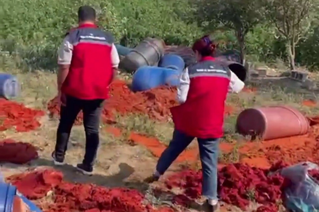 Hatay'da Tarım ve Orman İl Müdürlüğü ekiplerinin denetimleri esnasında katkı salça posası ve katkı maddesi kullanılarak imal edilen 6 ton domates posası imha edilirken, domates posası ve biber salçası görünümünde olan 36 ton ürün muhafaza altına alındı.