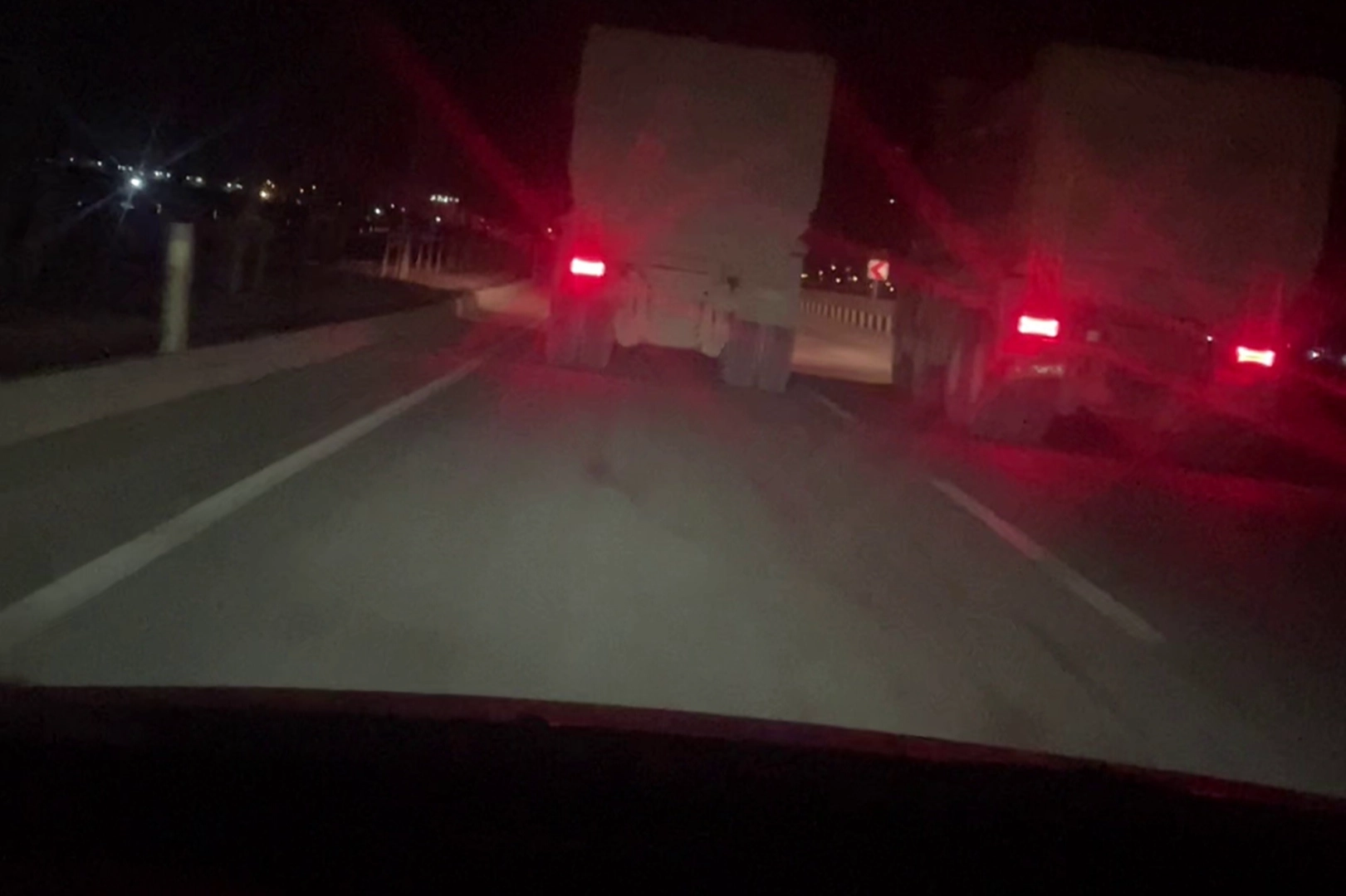 Asrın felaketi sonrası Hatay'da trafikte sayıları artan mikser ve hafriyat kamyonları trafiği zaman zaman tehlikeye düşürüyor. Antakya ilçesi havaalanı yolunda 2 hafriyat kamyonunun yarıştığı anlar trafikteki başka bir araç sürücüsü tarafından görüntülendi. Arkalarından seyreden ve hızları 100 kilometreyi bulan kamyonların o anları anbean görüntülendi. Görüntülerde; araç sürücüsünün selektör yapmasına rağmen kamyon sürücülerinin umursamadığı görüldü.