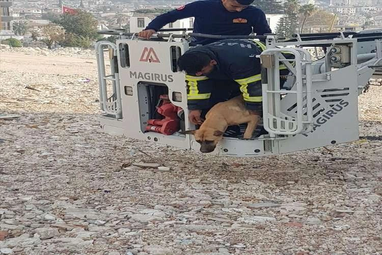 HATAY (AA) - Cumhuriyet Mahallesi'ndeki ağır hasarlı 6 katlı apartmandan köpek sesi duyan vatandaşlar, itfaiyeye haber verdi.
