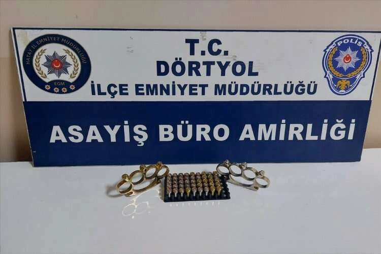 Zanlıların adreslerinde yapılan aramada 2 muşta ve 45 kurusıkı tabanca fişeği ele geçirildi.