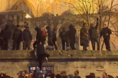 Öte yandan, bazı grupların kapıyı kırmaya çalıştığı anlar görüntülerde yer aldı. Ayrıca caminin çatısını kıran grup, kendilerini görüntüleyen vatandaşa tepki gösterdi.