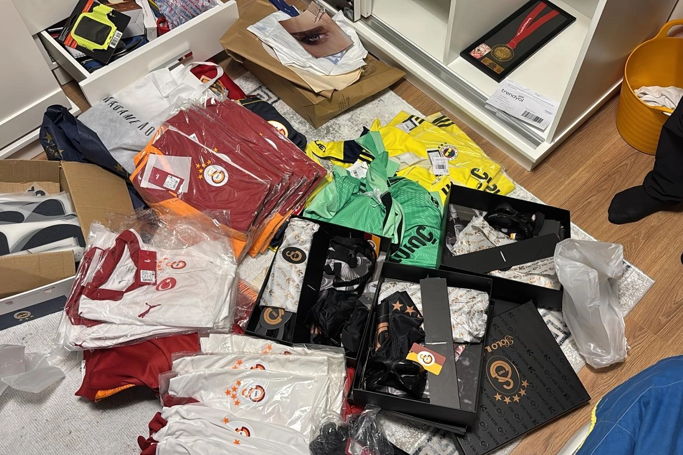 SEKİZ İLDE EŞ ZAMANLI BASKINLAR DÜZENLENDİToplanan delillerin ardından İstanbul merkezli olmak üzere toplam 8 ilde belirlenen adreslere operasyon düzenlendi. Operasyon kapsamında 15 şüpheli emniyet güçleri tarafından gözaltına alındı. Zanlıların ikametlerinde ve iş yerlerinde gerçekleştirilen aramalarda; karaborsa faaliyetlerinden elde edildiği değerlendirilen yüksek miktarda nakit para, satış için hazırda tutulan çok sayıda kaçak futbol forması ve suçun işlenmesinde kullanılan dijital materyallere el konuldu.