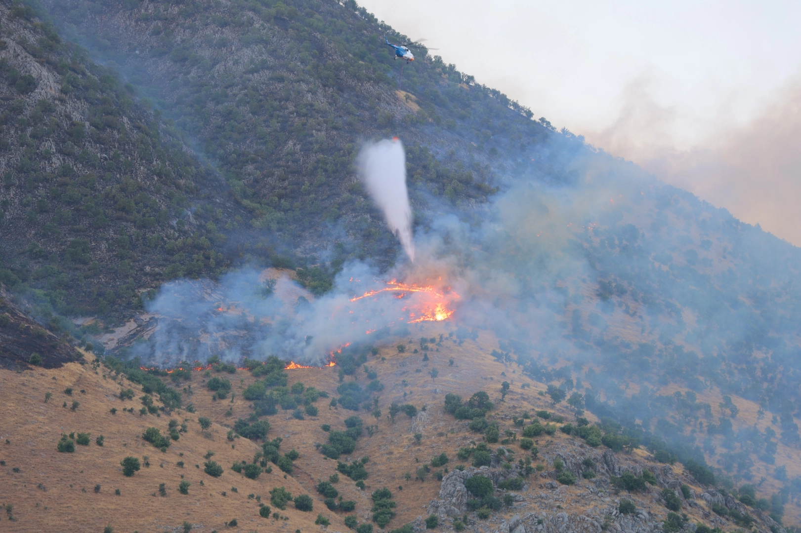 Kahramanmaraş’ın Türkoğlu ilçesinde ormanlık alanda çıkan yangın, rüzgarın da etkisiyle büyüyerek geniş bir alana yayıldı. İmalı Mahallesi kırsalında çıkan yangına 3 helikopterle havadan, çok sayıda araç ve 80 personelle karadan müdahale ediliyor. Makilik ve sarp alandaki orman yangının etkisini yitirmeye başladığı, kısa süre içerisinde kontrol alınmasının beklendiği bildirildi.