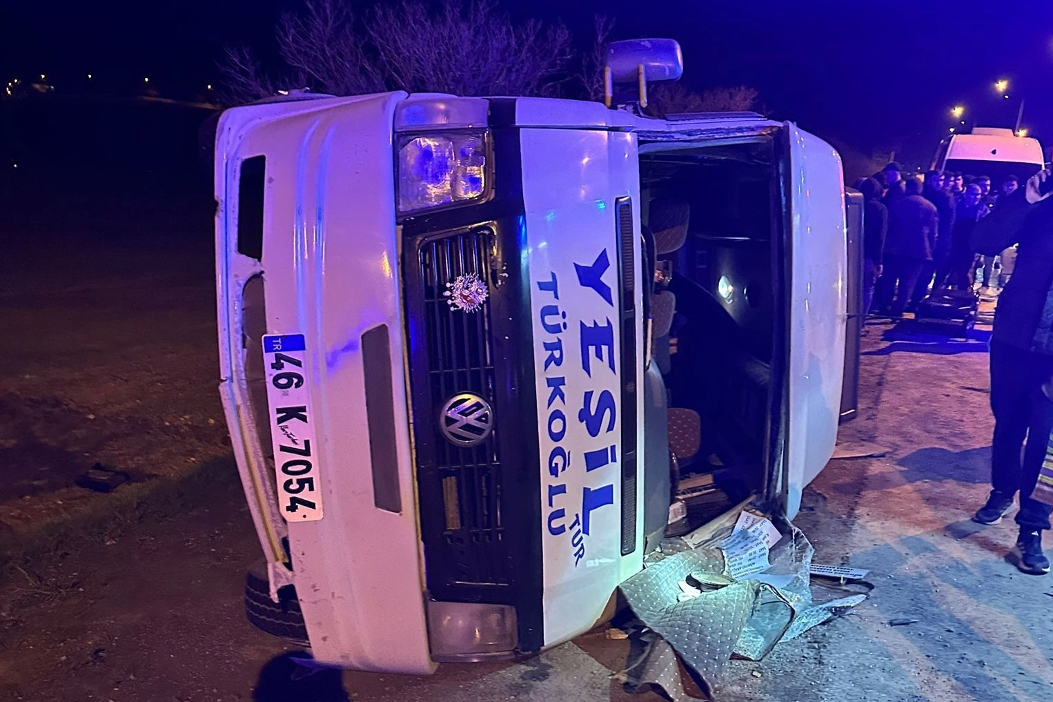 Kahramanmaraş’ın Türkoğlu ilçesine bağlı Çakallıçullu Mahallesi’nde bir minibüsün devrilmesi sonucu trafik kazası meydana geldi. Edinilen bilgilere göre, sürücüsünün direksiyon hakimiyetini kaybettiği minibüs kontrolden çıkarak devrildi. Kazanın ardından bölgeye itfaiye ve sağlık ekipleri sevk edildi. Minibüs içinde sıkışan 10 yaralı, itfaiye ekiplerinin çalışmasıyla araçtan çıkarıldı.