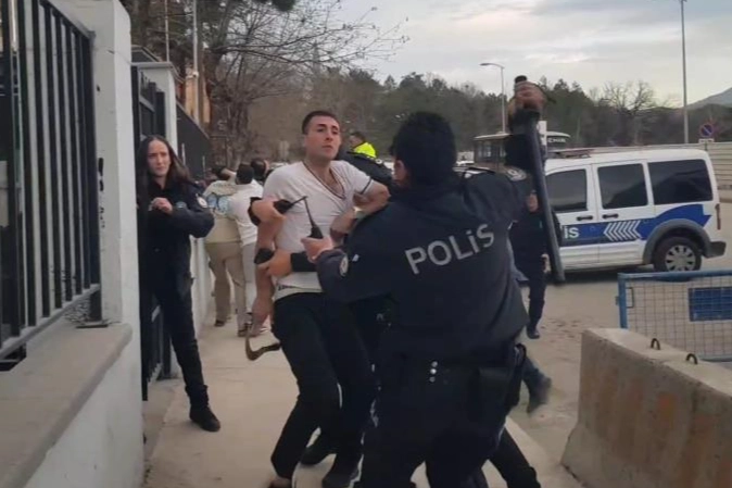 Kavgaya karışanların yakınları da polis merkezinin önüne gelerek ortalığı birbirine kattı. Polis merkezinin önüne gelen şahısların yakınlarından M.M. (24) ile Y.C.K. (22) isimli şahıslar ellerinde orak ve bijon anahtarı ile kavgaya karışanlardan birine saldırmaya çalışırken polis ekiplerinin hızlı müdahalesi faciayı engelledi.