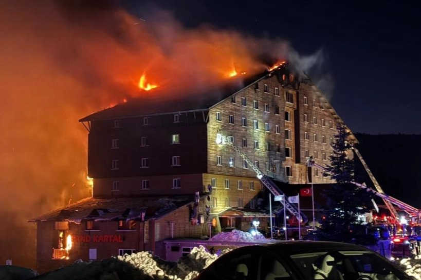 "Merdivenle 20 kişi kadar kurtarılmasına yardımcı olduk"Otelde kayak odasının sorumlusu olarak çalışan Şenol Güven (44) tanık olarak ifade verdi. Yangın anında 349 numaralı odada kaldığını ifade eden Güven, "Kayak odasından sorumluyum, Yangın anında odadaydım, Yanındaki arkadaşım uyandırdı yangın var dediler. Hızlı bir şekilde kalarak kayak çıkışından dışarı çıktım. Ben çıktığımda 4'üncü katın tamamen yandığını gördüm. Otelin sağ tarafından merdiven dayalıydı. Ceyda Hacıbekiroğlu'nu gördüm yabancı yardımcısı vardı. Emir Aras'ı da orada gördüm. Merdivenle 20 kişi kadar kurtarılmasına yardımcı olduk. Yaralılara yardımcı olmaya çalıştık. Alarm duymadın yangın tatbikatı da yapılmadı. İş güvenliği uzmanı da yoktu. Otelde yağmurlama sistemi yoktu" diye konuştu.