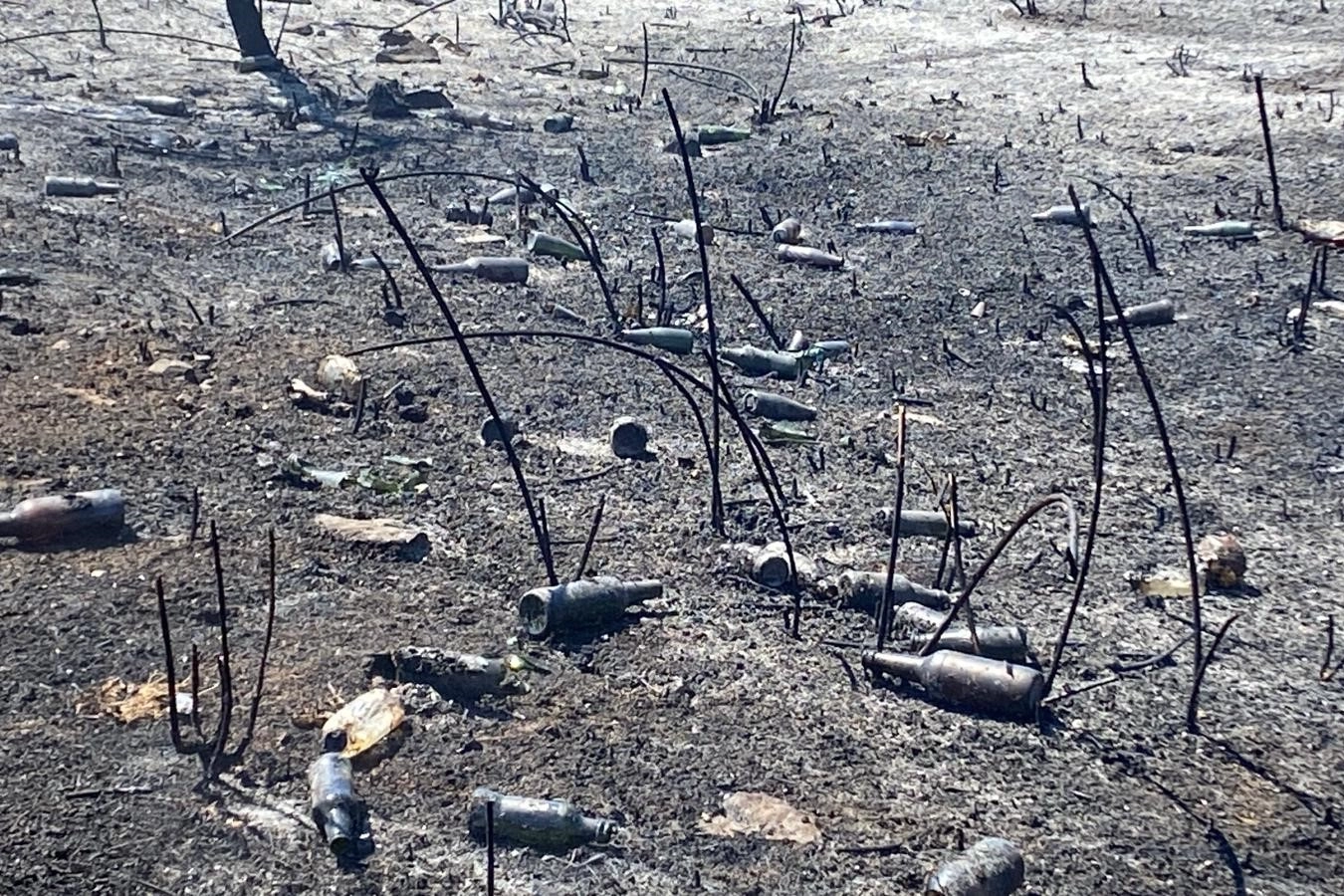 Yangın sonrası yapılan soğutma çalışmaları sırasında otluk arazide yüzlerce boş cam şişe olduğu tespit edildi. Cam şişelerin güneş ışığını yansıtarak yangına neden olmuş olabileceği ihtimali değerlendirilirken, olayın sabotaj olabileceği şüphesi de göz önünde bulundurularak araştırma başlatıldı.