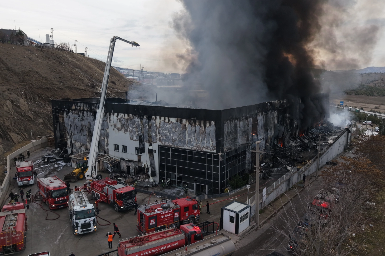 Kırıkkale'nin Yahşihan ilçesindeki Organize Sanayi Bölgesi'nde faaliyet gösteren Bahadır Kimya Fabrikası'nda henüz belirlenemeyen bir nedenle çıkan yangın, kısa sürede büyüyerek geniş bir alana yayıldı. Bölgeye çok sayıda itfaiye, AFAD ve sağlık ekibi sevk edildi. Fabrikada bulunan 70 işçi güvenli şekilde tahliye edildi. Kırıkkale Belediyesi İtfaiye Müdürlüğü'nün yanı sıra çevre illerden de takviye ekiplerin müdahalesiyle yangın büyük oranda kontrol altına alınırken, tankların bulunduğu bölümde de tehlikenin bertaraf edildiği öğrenildi. AFAD'ın koordinasyonunda yürütülen çalışmalarda yangının tamamen söndürülmesinin ardından soğutma çalışması yapılacak. Kırıkkale Valisi Mehmet Makas, Belediye Başkanı Ahmet Önal ve ilgili kurum müdürleri de bölgedeki söndürme çalışmalarını yakından takip ediyor. Vali Makas, çalışmalar hakkında ilgili müdürlerden bilgi aldı. Fabrikanın tam sigorta ve kasko güvencesine sahip olduğu öğrenilirken, işletmenin üretim faaliyetlerine en kısa sürede yeniden başlayabilmesi için gerekli desteklerin sağlanacağı ifade edildi.