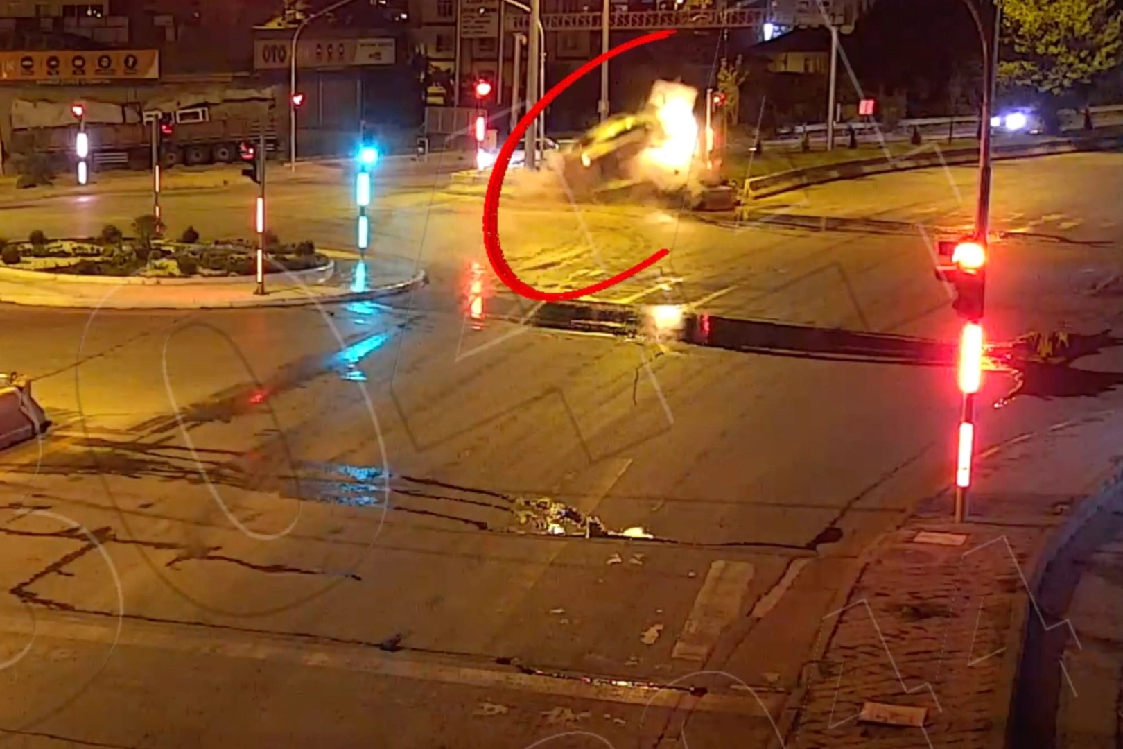 Kırıkkale’de yaşanan trafik kazaları, İl Emniyet Müdürlüğü tarafından paylaşılan Kent Güvenlik Yönetim Sistemi (KGYS) kameralarına yansıdı. Görüntülerde, beton bariyerlere çarpan bir otomobilin sürücüsünün direksiyon hakimiyetini kaybetmesi sonucu aracın motor kısmının alev aldığı anlar yer aldı.