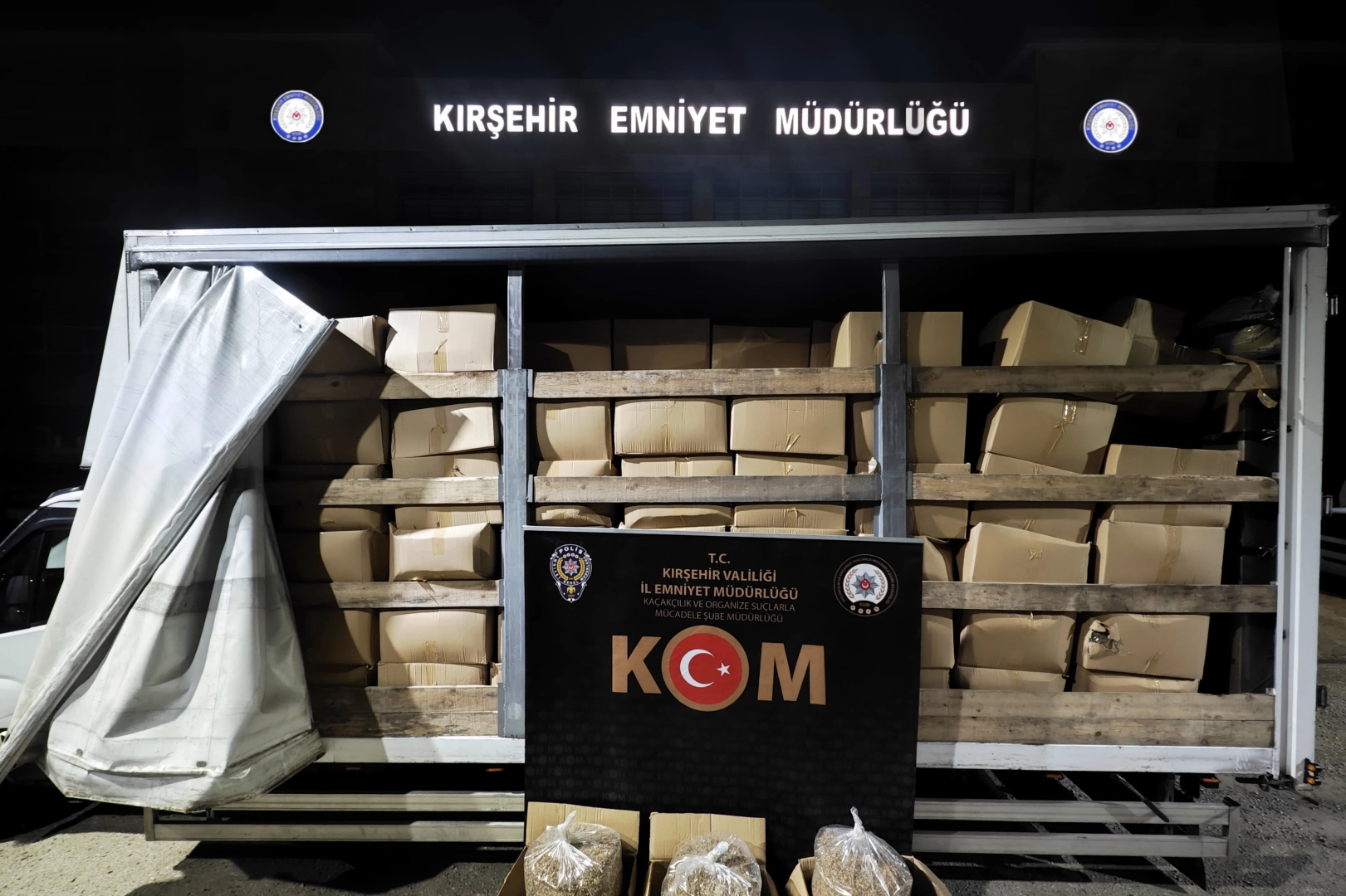Kırşehir İl Emniyet Müdürlüğü’ne bağlı Kaçakçılık ve Organize Suçlarla Mücadele Şube Müdürlüğü ile İstihbarat Şube Müdürlüğü ekiplerince, kaçakçılık faaliyetlerini önlemek amaçlı operasyon düzenlendi. Yapılan çalışmalarda 280 koli halinde toplam 3,4 ton kıyılmış tütün ele geçirildi. Piyasa değerinin yaklaşık 3 milyon 400 bin TL olduğu değerlendirilen kaçak tütünlere el konuldu. Olayla ilgili şüpheli A.B. hakkında adli işlem başlatıldı