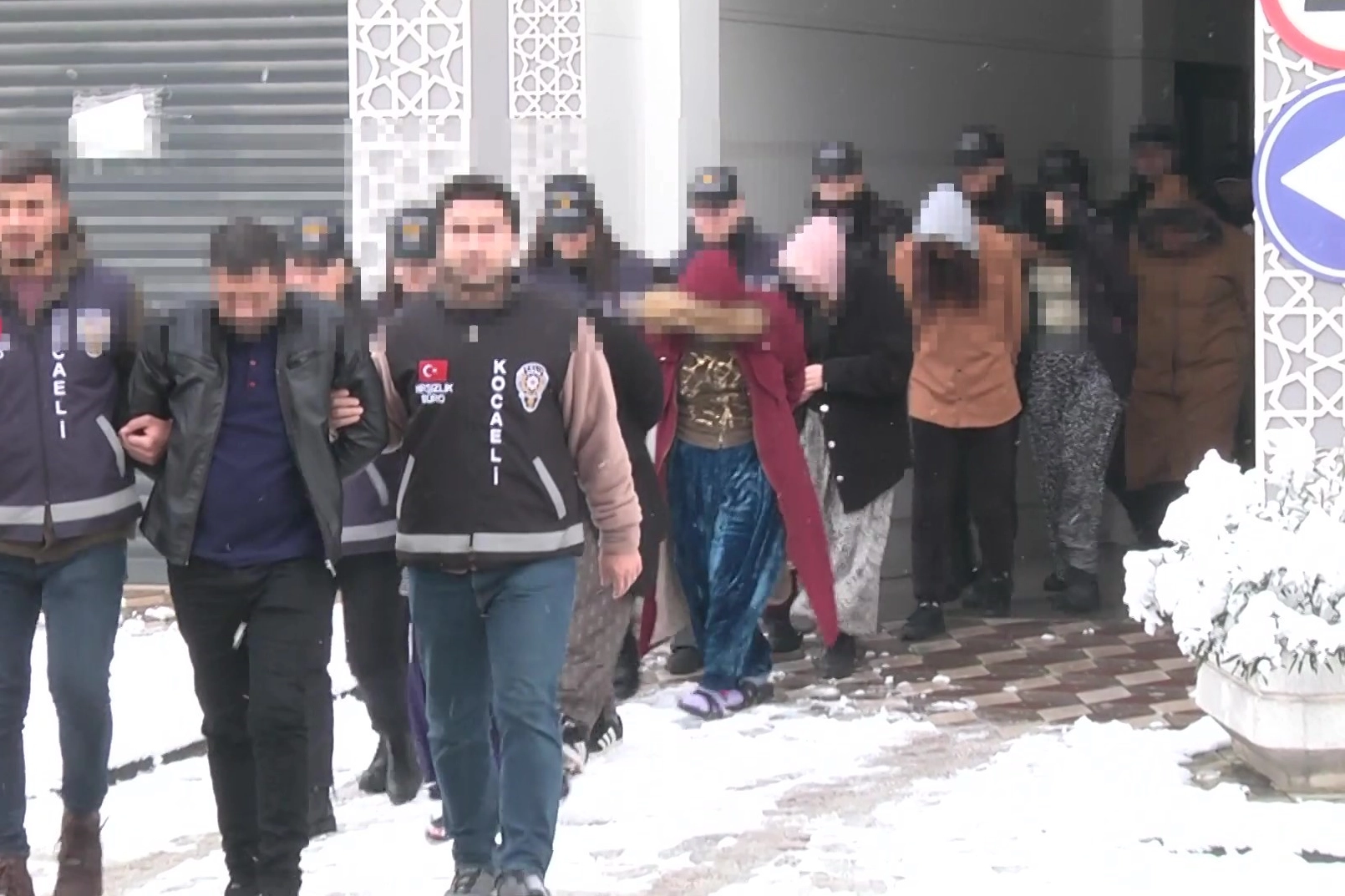 Kocaeli, İstanbul ve Kayseri'de eş zamanlı operasyonla yakalandılarŞüphelilerin yakalanması için 18 Şubat'ta Kocaeli, İstanbul ve Kayseri'de eş zamanlı operasyon yapıldı. Operasyonda 20 şüpheli yakalanarak gözaltına alınırken, adreslerde ayrıca aranması olan 9 şahıs yakalandı. Yakalanan şahıslardan Y.G'nin 21 yıl 11 ay, E.M'nin 6 yıl kesinleşmiş hapis cezasıyla aranması olduğu tespit edildi. Yakalanan şüpheliler, emniyetteki işlemlerinin ardından bugün adli makamlara sevk edildi. Savcı karşısına çıkarılan şüphelilerden 3'ü adli kontrol şartıyla serbest bırakıldı, 17 kişi ise tutuklanarak cezaevine gönderildi. Projeli dosya kapsamında bugüne kadar 9 şahıs ara yakalamalarda ve 17'si dosya sonunda tutuklu, 5'i daha önceden cezaevinde olmak üzere toplam 31 kişi tutuklandı.