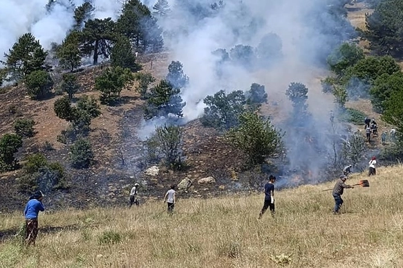 Konya'nın Doğanhisar ilçesinde ormanlık alanda çıkan yangına havadan ve karadan müdahale ediliyor.Davras Mahallesi yakınlarındaki ormanlık alanda henüz belirlenemeyen nedenle yangın çıktı.İhbar üzerine bölgeye Doğanhisar ve Ilgın Orman İşletme Şefliği personeli ile Konya itfaiyesine bağlı ekipler sevk edildi.Jandarma ekipleri, bölgeye giden kara yolunda güvenlik önlemi aldı.