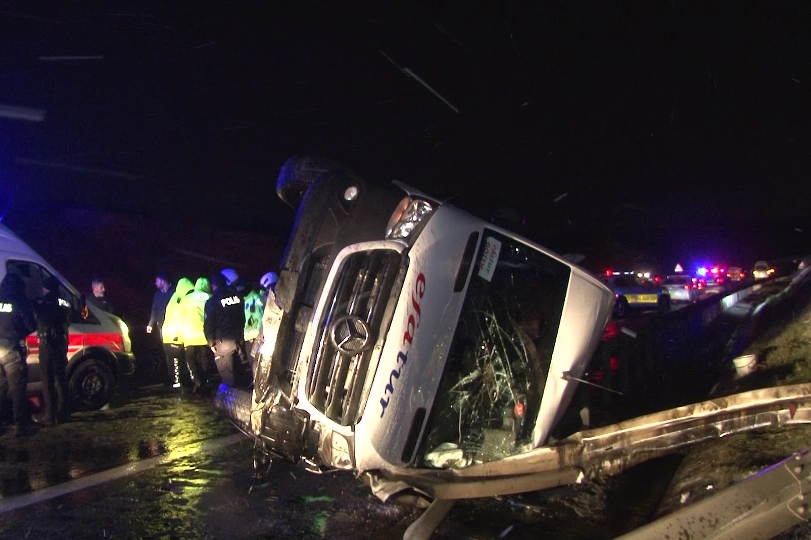 Kuzey Marmara Otoyolu Arnavutköy Boğazköy İstiklal mevkiinde kaza meydana geldi. Edinilen bilgiye göre yoğun kar yağışı sonrası kayganlaşan yolda 34 LPT 868 plakalı Mercedes marka servisin sürücüsü F.S. direksiyon hakimiyetini kaybetti. Yoldan çıkan ve önce ters dönen servis aracı devrilerek bariyerlere vurdu. Kaza sonrası yan dönen servis aracında bulunan özel bir şirkette çalıştıkları öğrenilen 11 kişi yaralandı. İhbar üzerine olay yerine çok sayıda itfaiye, sağlık, polis ve UMKE ekibi sevk edildi. Araçta sıkışan yolcular itfaiye ekiplerinin çalışması sonucu çıkarıldı. Sağlık ekiplerinin olay yerindeki ilk müdahalesinin ardından yaralı 11 kişinin de hafif yaralandığı öğrenildi. Yaralılar çevre hastanelere sevk edilirken kaza yapan servis aracı çekici yardımıyla olay yerinden kaldırıldı. Kaza gece saatlerinde olması sebebiyle trafiğe sebep olmazken polis ekipleri trafik akışının kontrollü bir biçimde sağladı. Kazada şans eseri ölen ya da ağır yaralanan kimse bulunmazken kaza ile ilgili inceleme başlatıldı.