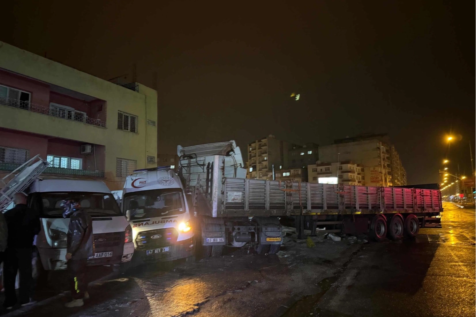 Mardin’in Kızıltepe ilçesinde gece saatlerinde Bahçelievler Mahallesi’nde kaza meydana geldi. Edinilen bilgiye göre, tır, transit araç ve vakaya gitmekte olan ambulans kontrolden çıkarak çarpıştı. İhbar üzerine olay yerine sağlık ve polis ekipleri sevk edildi. Kazada ambulans personelleri M.K. (42) ve B.K. (28) ile ambulans sürücüsü Z.T. (36) ve tır sürücüsü A.E. (22) yaralandı. Yaralılar, olay yerindeki ilk müdahalenin ardından Kızıltepe Devlet Hastanesine kaldırıldı. Olay ile ilgili inceleme başlatıldı.