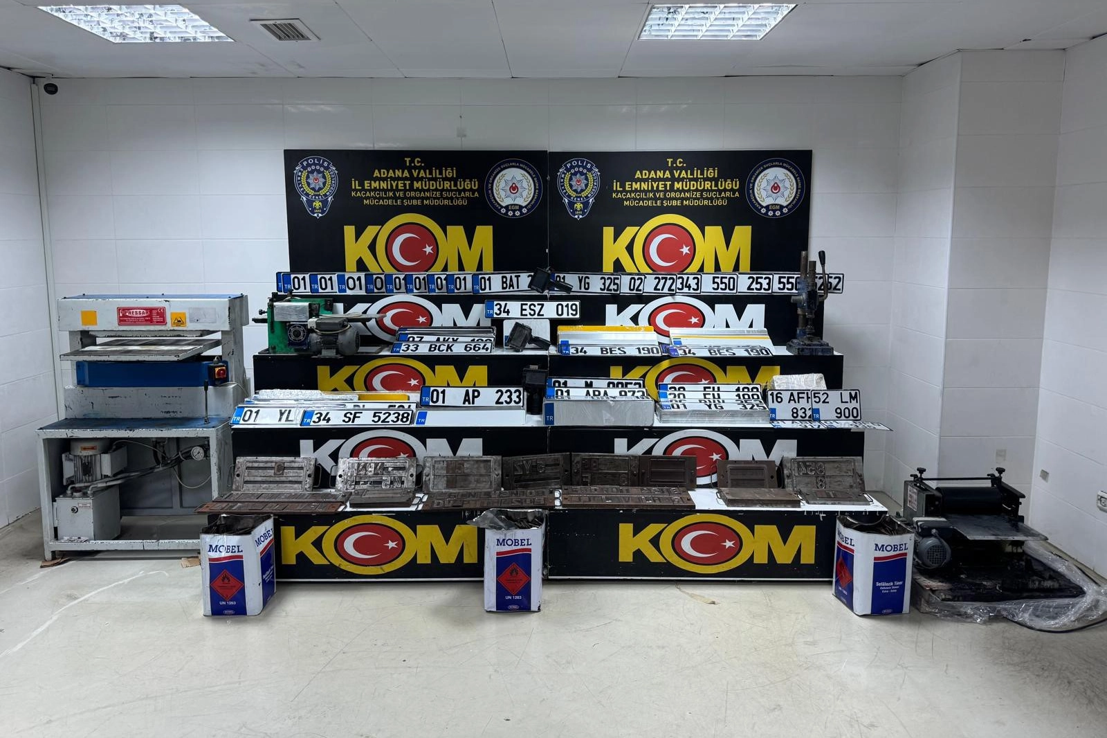 Adana Emniyet Müdürlüğü Kaçakçılık ve Organize Suçlarla Mücadele (KOM) Şube Müdürlüğü bağlı Mali Büro ekipleri, "resmi belgede sahtecilik" suçu kapsamında ‘APP' plaka olarak bilinen sahte plaka basan 3 atölyeyi teknik ve fiziki takip sonucu deşifre etti. Toplanan delillerinin ardından söz konusu 3 atölyeye eş zamanlı baskın yapıldı.