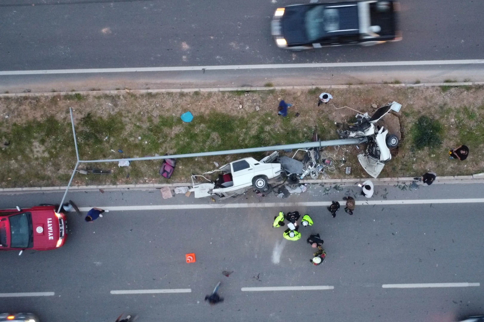 Çarpışmanın şiddetiyle savrulan otomobil, refüjde bulunan beton aydınlatma direğine sert bir şekilde vurdu. Çarpmanın etkisiyle otomobilin ortadan ikiye ayrıldığı görülürken, aydınlatma direği ise yola devrildi. Hafif ticari araç ise kaza noktasının yaklaşık 100 metre ilerisinde refüje çıkarak bir ağaca çarptıktan sonra durabildi.
