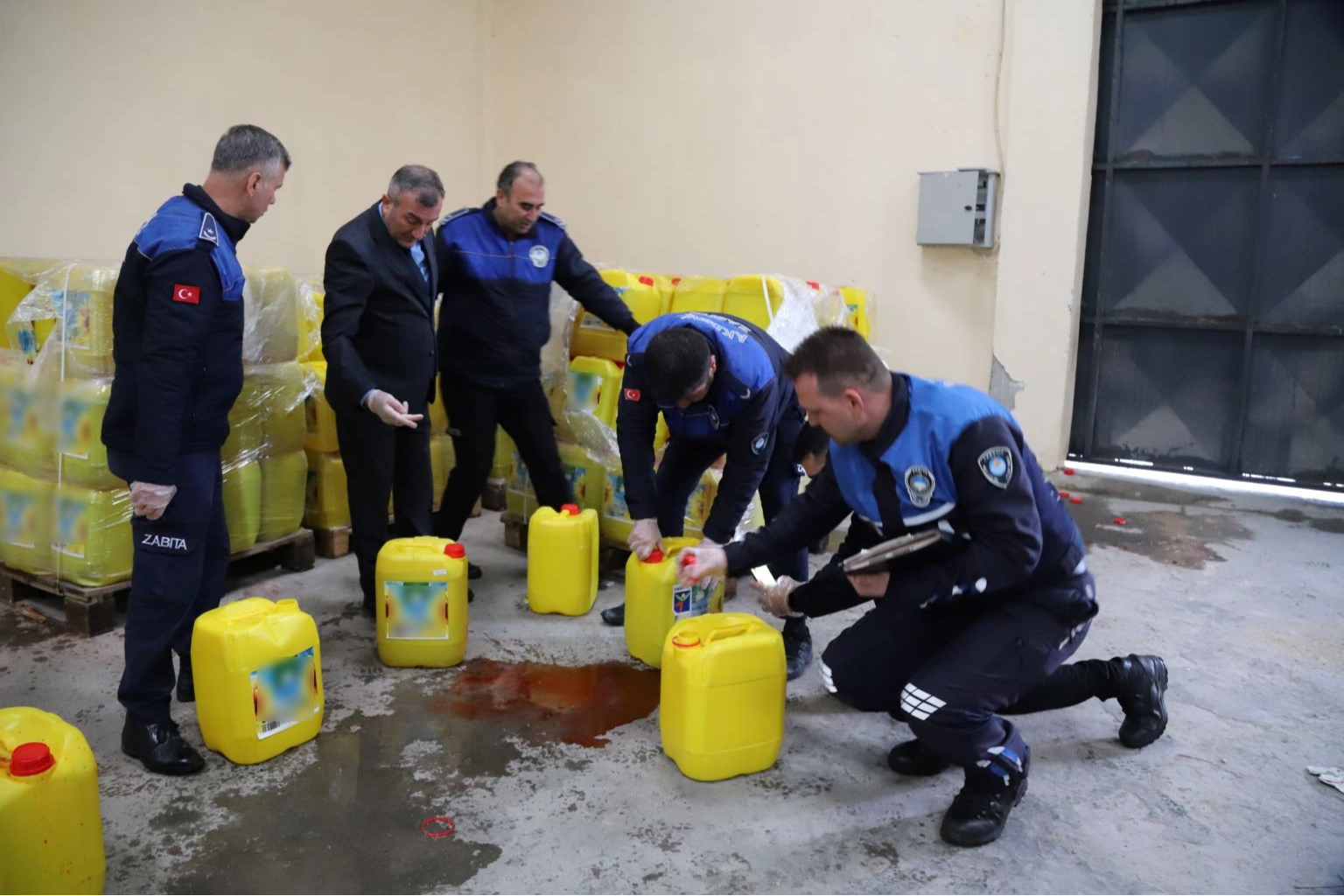 3 BİN 650 BİDON ELE GEÇİRİLDİDepoda yapılan aramalarda, sevkiyata hazır halde bekletilen 3 bin 650 adet 20 litrelik bidon tespit edildi. Ambalajları ve etiketleriyle orijinal ayçiçeği yağı görünümü verilen bidonların içeriği ise şüphe uyandırdı. Akdeniz İlçe Tarım ve Orman Müdürlüğü ekiplerinin de katılımıyla yürütülen incelemede bidonlardan numuneler alındı.