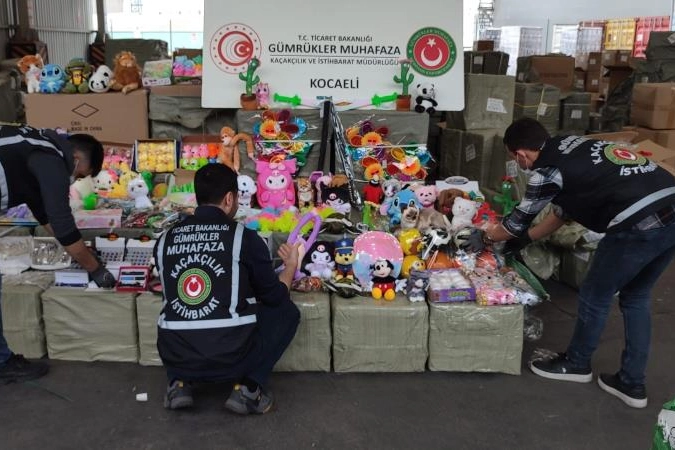 22 Milyon Türk Lirası değerinde farklı türlerde ticari eşyaya el konulduGümrük Muhafaza ekiplerinin detaylı aramaları sonucunda 4 adet konteyner içerisinde 197 bin 548 adet oyuncak, 2 bin 592 adet fan, 28 bin 800 adet lazer, 575 adet gözlük, 2 bin 484 adet çanta, 7 bin 950 adet şişirilebilir top, 8 bin 690 adet at tut yakala oyun seti olmak üzere 7 kalemde toplamda 248 bin 639 adet ticari eşya tespit edildi. Yapılan operasyon sonucunda yakalanan kaçak eşyaların piyasa değerinin yaklaşık 22 milyon Türk Lirası olduğu belirlendi. Konuyla alakalı soruşturma Kocaeli Cumhuriyet Başsavcılığı nezdinde devam ediyor.