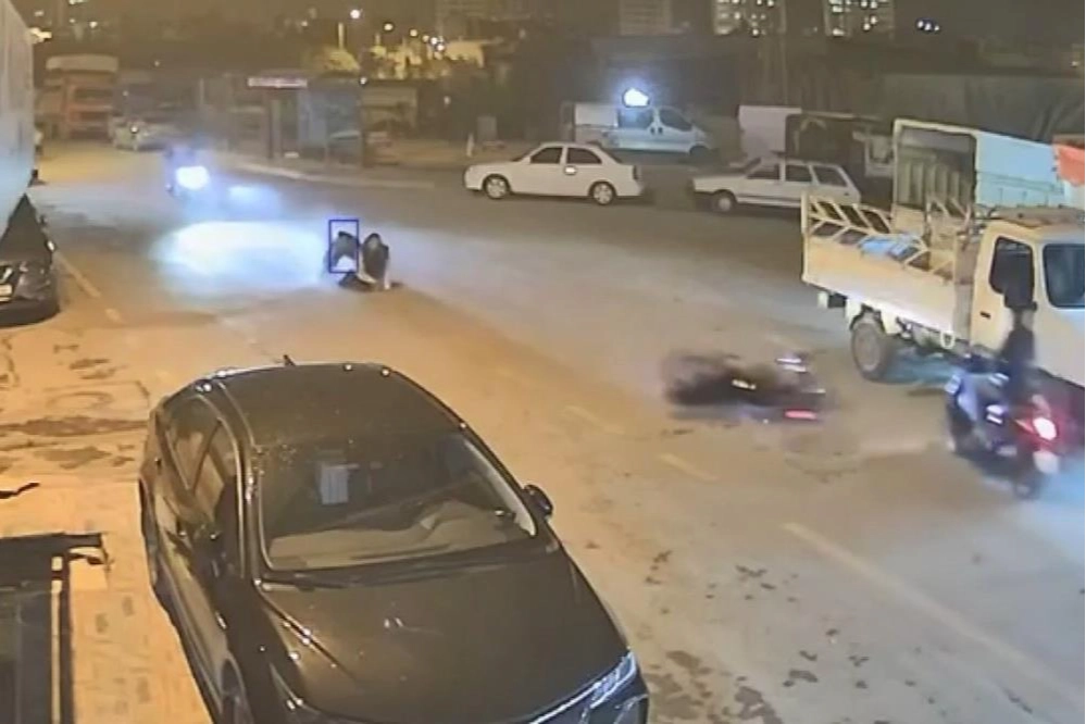 Mersin’in Tarsus ilçesinde motosikletle akrobatik hareketler yaparken kaza yapan motosikletli ve arkasındaki yolcu kaza yaptı. Kazanın ardından yere düşen ikili motosikleti bırakıp kaçtı. İlginç kaza iş yeri kamerasına saniye saniye yansıdı.