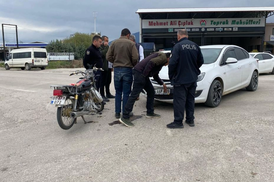 Osmaniye’de otomobil ile motosikletin çarpışması sonucu meydana gelen trafik kazasında motosiklette bulunan 2 kişi yaralandı.Kaza, Düziçi ilçesi Muhsin Yazıcıoğlu Caddesi Çiftlik Kavşağı’nda meydana geldi. Nihat A. idaresindeki 34 AAP 619 plakalı otomobilin ile Ahmet T. idaresindeki 80 AFM 072 plakalı motosikletle çarpışması sonucu motosiklette bulunan 2 kişi yaralandı. Olayı gören diğer sürücülerin ihbarı üzerine olay yerine emniyet ve sağlık ekipleri sevk edildi. Yaralılar ambulansla Düziçi Devlet Hastanesine kaldırılarak tedavi altına alınırken, kazayla ilgili inceleme başlatıldı.