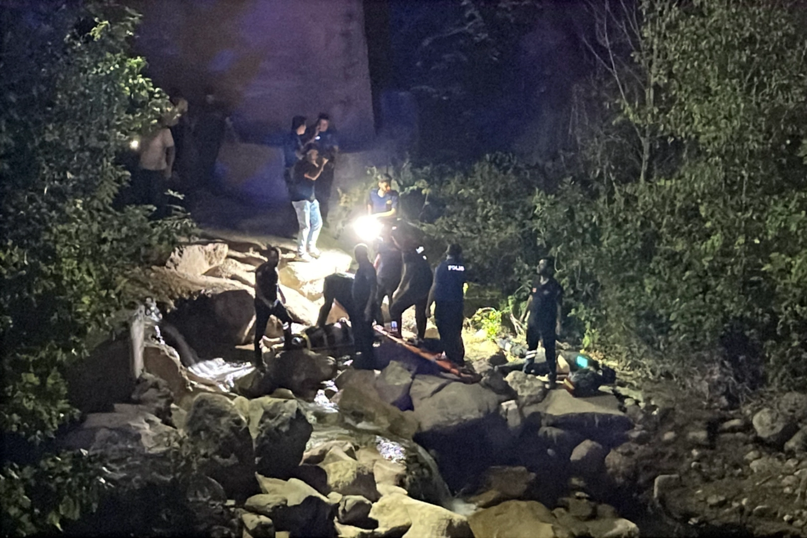 EKİPLER VE VATANDAŞLAR SEFERBER OLDUKazayı gören çevredeki vatandaşların 112 Acil Çağrı Merkezi'ne yaptığı ihbar üzerine olay yerine çok sayıda polis, itfaiye, AFAD ve sağlık ekibi sevk edildi. Dere yatağında bulunan iki kişiye ulaşmak için ekipler ve vatandaşlar adeta seferber oldu. AFAD ve itfaiye görevlileri, vatandaşların da yardımıyla yaralı ve hayatını kaybeden kişiyi bulundukları yerden çıkarmak için yoğun çaba sarf etti.