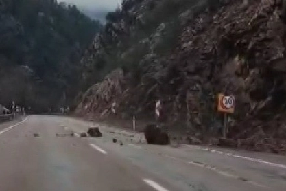 Adana'nın Saimbeyli ilçesinde etkili olan sağanak yağışın ardından dağlık alandan kopan kaya parçası kara yoluna düştü. Olay, geçmişte 4 öğretmenin hayatını kaybettiği bölgede meydana gelmesi nedeniyle endişe oluşturdu.
