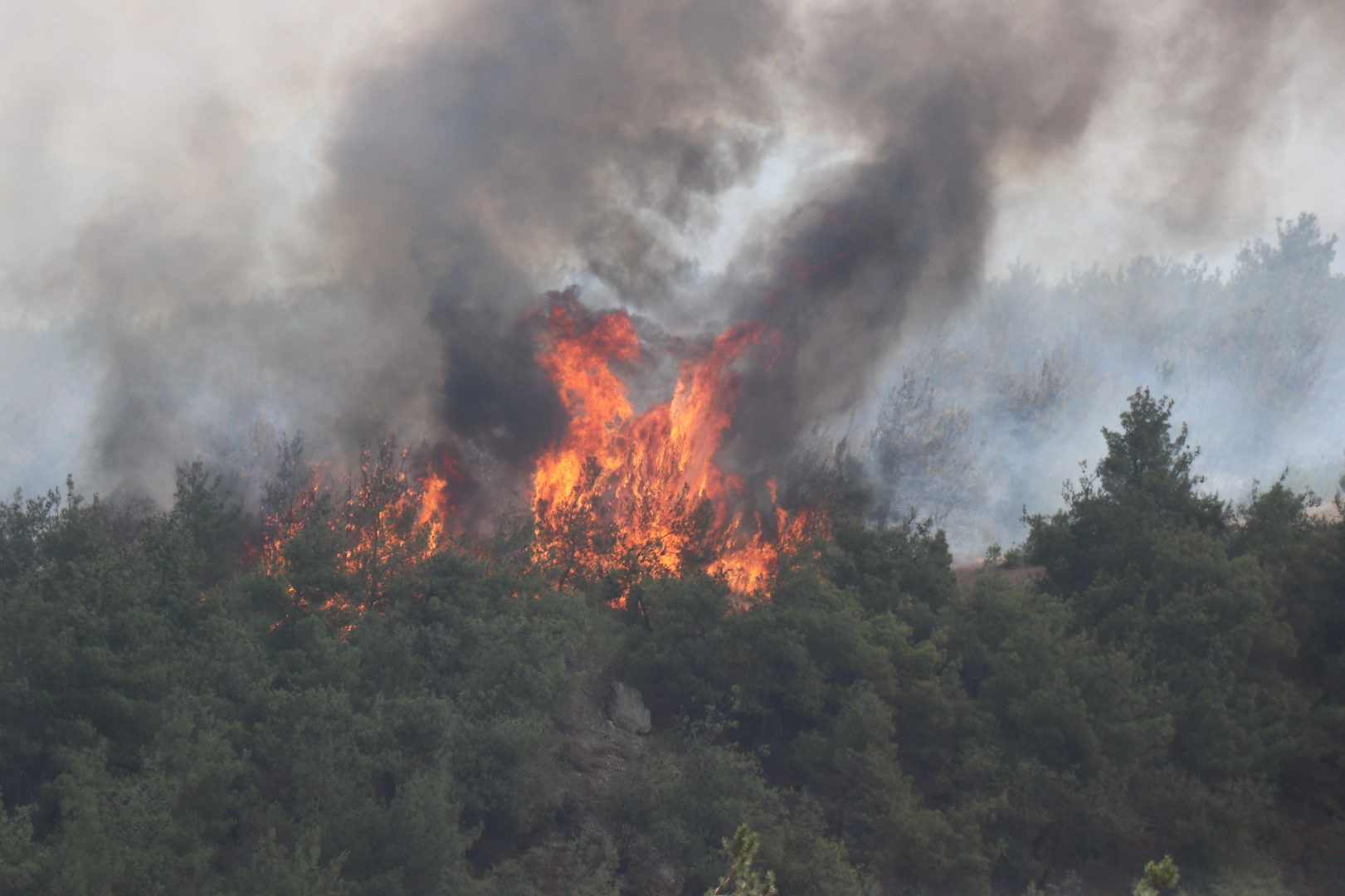 Sakarya'nın Geyve ilçesinde yaklaşık 45 saat önce başlayan orman yangını, bazı bölgelerde yeniden alevlenmeye devam ediyor. İlk andan itibaren ilgili kurumların koordineli müdahalesiyle söndürme çalışmaları sürerken, yoğun sis nedeniyle hava desteği yapılamıyor. Yangının ikinci gününde 12 helikopter ve 6 uçakla havadan müdahale sağlanmıştı, ancak üçüncü gününde sisin etkisiyle söndürme çalışmaları sadece karadan, çok sayıda arazöz, iş makinesi ve personel desteğiyle devam ediyor. Aradan geçen yaklaşık 45 saatin sonunda gökyüzünün beyaz dumanla kaplandığı ormanlık alanın bazı bölgelerinde ise yeniden alevlenme görünüyor. Ekipler, yangını kontrol altına almak için çalışmalarına devam ederken alevlenene bölge havadan görüntülendi.