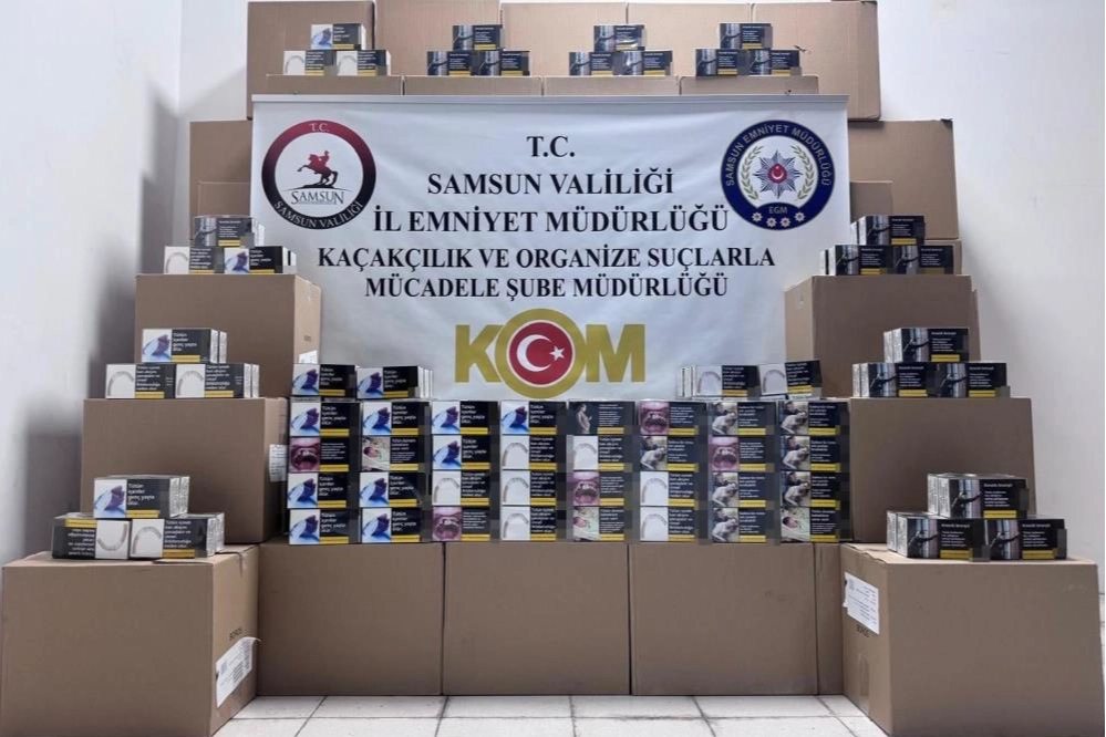 Samsun Emniyet Müdürlüğü Kaçakçılık ve Organize Suçlarla Mücadele (KOM) Şube Müdürlüğü ekiplerince kaçakçılara yönelik yapılan gece baskınında 500 bin TL’lik yasa dışı ürün ele geçirildi.Samsun’un İlkadım ilçesinde, gece saatlerinde şüpheli bir kamyon hareketliliği tespit eden KOM ekipleri, anında harekete geçti. Depoya malzeme indirildiği sırada yapılan baskında, piyasa değeri 500 bin TL’yi bulan tam 790 bin adet sahte bandrollü makaron ele geçirildi. Olayla bağlantılı olarak E.M. (27) isimli şahıs yakalanarak hakkında yasal işlem başlatıldı.