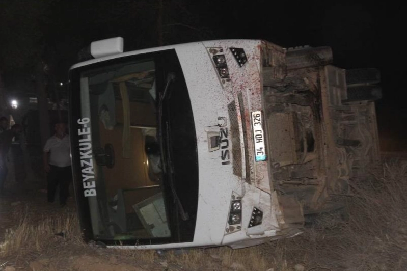 Şanlıurfa'nın Ceylanpınar ilçesinde TİGEM'de çalışan işçileri taşıyan servis otobüsünün eşeğe çarparak devrilmesi sonucu 15 kişi yaralandı.Edinilen bilgiye göre kaza, gece saatlerinde Şanlıurfa'nın Ceylanpınar ilçesinde bulunan Tarım İşletmeleri Genel Müdürlüğüne (TİGEM) bağlı Ceylanpınar Tarım İşletmeleri Müdürlüğü Beyazkule mevkisinde yaşandı. TİGEM'de çalışan işçileri taşıyan 34 HDJ 326 plakalı Beyazkule-6 isimli Isuzu marka servis otobüsü, önüne aniden çıkan eşeğe çarptı. Kontrolden çıkarak devrilen otobüsteki 15 işçi yaralandı. Yaralılar, olay yerine giden sağlık ekiplerinin ilk müdahalesinin ardından ambulanslarla Ceylanpınar Devlet Hastanesine kaldırılarak tedavi altına alındı. Yaralıların sağlık durumlarının iyi olduğu öğrenilirken kazaya neden olan eşek ise olay yerinde telef oldu.