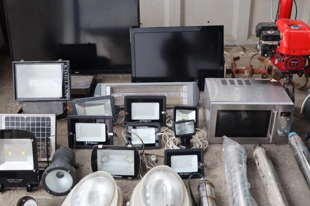 Şüpheliler Ş.B. ve İ.H.B. gözaltına alınırken ikametlerinde yapılan aramada, 1 çalıntı motosiklet, 2 çapa makinesi, 2 kompresör, 6 motorlu testere, 4 dalgıç motor, 1 kaynak makinesi, 11 su motoru, 2 ot biçme makinesi, 1 ilaçlama makinesi, 1 regilatör, 5 matkap, 3 spiral demir kesme makinesi, 1 degobaj makinesi, 2 televizyon, 1 elektrikli fırın, 1 elektrikli soba, 1 elektronik tartı, 1 avometre, 1 modem, 1 küçük güneş paneli, 10 adet çeşitli boyutlarda projektör, 2 adet sokak lambası, 1 adet güvenlik kamerası, 18 adet farklı boyutlarda kapı kilidi, çok miktarda farklı boyutlarda elektrik kablosu, 1 adet demir kesme makası ile çok sayıda pense, tornavida, bahçe makası gibi ev eşyası ele geçirildi.