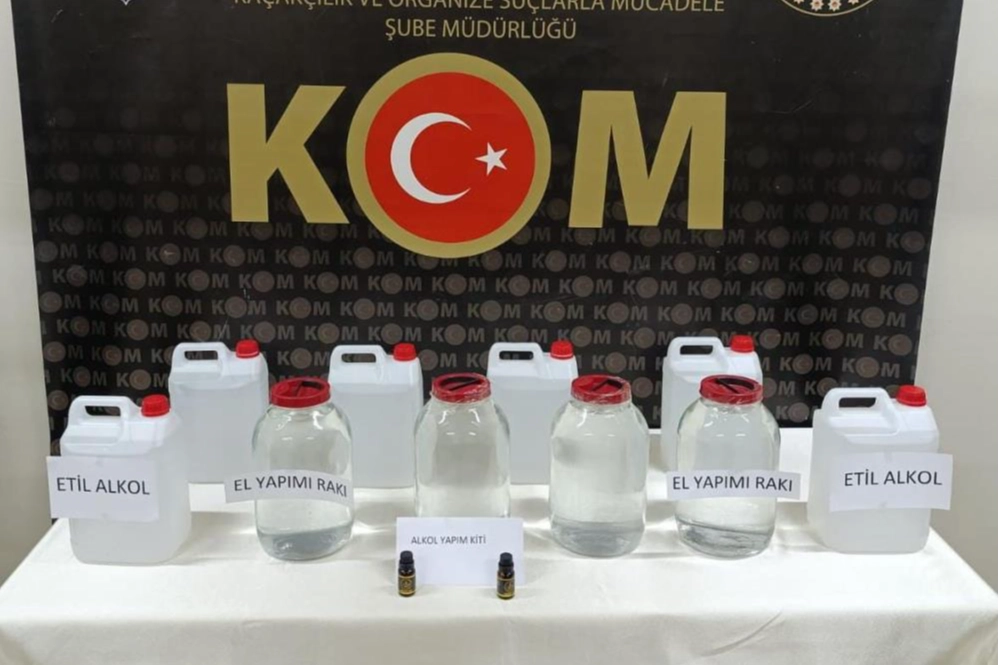 Sivas'ta bir iş yerine düzenlenen operasyonda, 50 litre kaçak içki ve üretimde kullanılan malzemeler ele geçirildi.Sivas Cumhuriyet Başsavcılığı koordinesinde Kaçakçılık ve Organize Suçlarla Mücadele Şube Müdürlüğü ekipleri tarafından kaçakçılık suçlarıyla mücadele çerçevesinde yürütülen çalışmalarda kent merkezindeki bir iş yerinde kaçak ve sahte alkollü içki üretimi yapıldığı tespit edildi. Adli makamların talimatıyla iş yerine gerçekleştirilen operasyonda 20 litre el yapımı kaçak rakı, 30 litre etil alkol ve 2 adet alkol üretim kiti ele geçirildi. 1 kişi hakkında 5607 sayılı Kaçakçılıkla Mücadele Kanunu'na muhalefet suçundan işlem yapıldı.