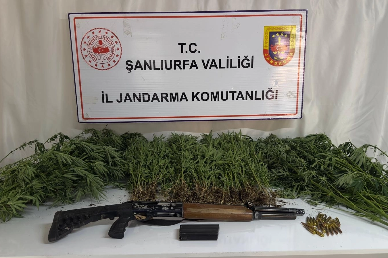 Şanlıurfa İl Jandarma Komutanlığı ekipleri, uyuşturucuyla mücadele kapsamında Siverek, Viranşehir ve Haliliye ilçelerinde eş zamanlı operasyon düzenledi. İl Jandarma Komutanlığı koordinesinde; ilçe jandarma komutanlıkları, İstihbarat ve Narkotik Şube Müdürlüğü ekiplerinin katılımıyla gerçekleştirilen operasyonda, uyuşturucu madde bulundurduğu belirlenen şüphelilerin ikametlerinde arama yapıldı. Yapılan aramalarda: 58 gram metamfetamin maddesi, 51 kök kenevir bitkisi, 157 kök skunk kenevir bitkisi, 5 gram kubar esrar maddesi, 18 adet reçetesiz sentetik hap, 1 adet ruhsatsız av tüfeği, 1 adet piyade tüfeği şarjörü, 20 adet 7.62 mm çapında fişek ele geçirildi. Olayla ilgili şüpheli şahıslar hakkında adli işlemler başlatıldı. Şanlıurfa İl Jandarma Komutanlığı tarafından uyuşturucu ile mücadele çalışmaları kararlılıkla sürdürüleceği belirtildi.