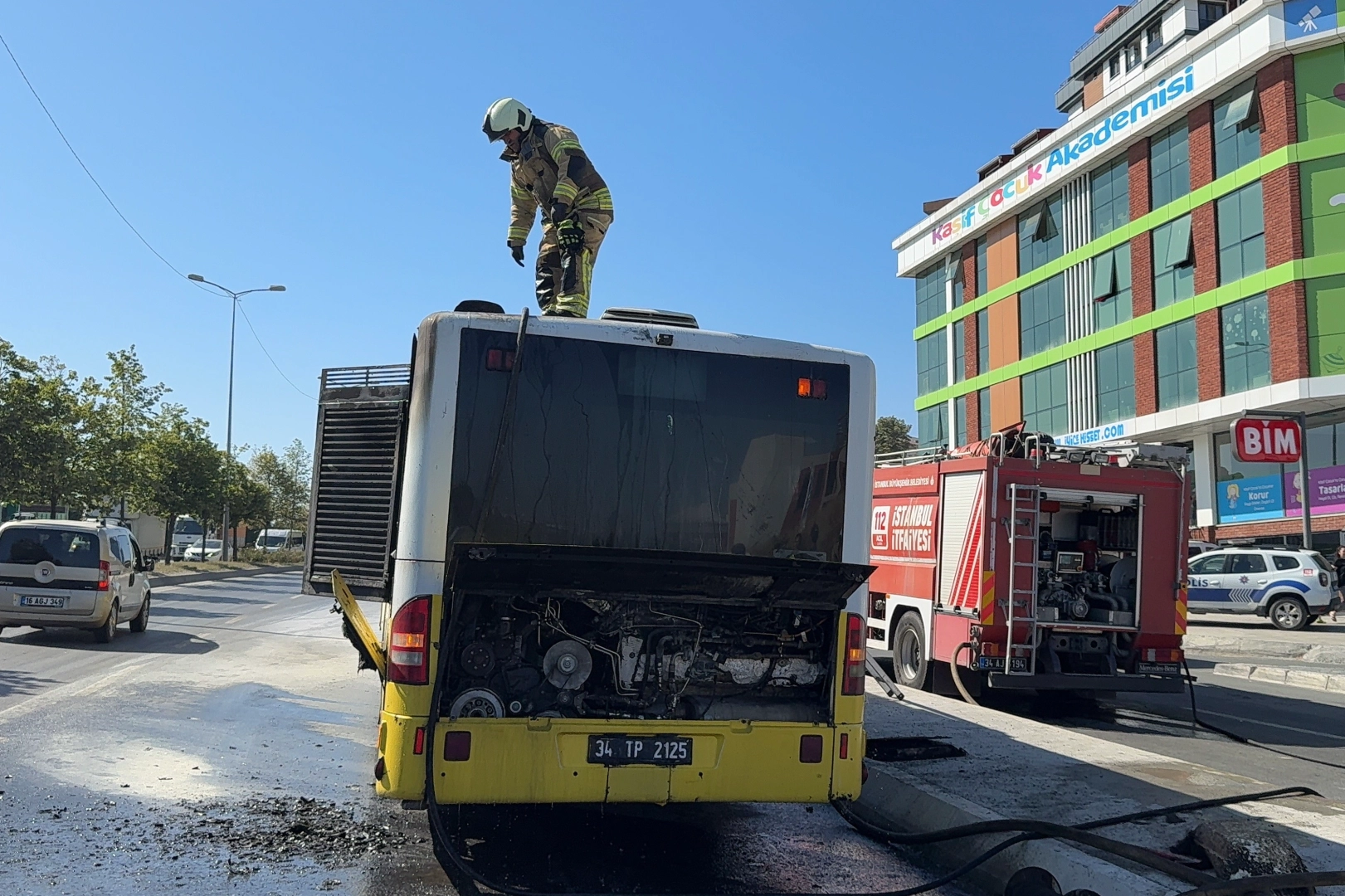İstanbul Sultangazi’de seyir halindeki İETT otobüsünün motor kısmında çıkan yangın, vatandaşların ilk müdahalesi yetersiz kalınca beton mikseriyle söndürülmeye çalışıldı. İtfaiye ekiplerinin gelerek yangını tamamen kontrol altına aldığı anlar, cep telefonu kamerasıyla kaydedildi.Yangın, saat 16.00 sıralarında Sultangazi Eski Habipler Mahallesi'nde çıktı. Edinilen bilgiye göre, Arnavutköy istikametine seyir halinde olan 34 TP 2125 plakalı İETT otobüsünün motor kısmından dumanlar yükselmeye başladı. Dumanları fark eden sürücü, otobüsü yol kenarına çekerek durdurdu. İhbar üzerine olay yerine polis, itfaiye ve sağlık ekipleri sevk edildi. Motor kısmından yükselen alevlere çevredeki vatandaşlar yangın söndürme tüpleriyle müdahalede bulundu. O esnada oradan geçen beton mikseri sürücüsü, yanan otobüsün yanında durarak yangın söndürme çalışmalarına destek verdi. Olay yerine gelen itfaiye ekiplerinin müdahalesi sonrası yangın kontrol altına alınarak soğutma çalışması yapıldı. Otobüs yangınında can kaybı ve yaralanma olmazken, itfaiye ekiplerinin müdahalesinin ardından yangın tamamen söndürüldü. Yangın ile ilgili inceleme sürüyor.