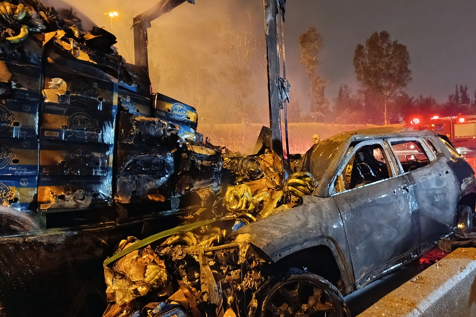 Kısa sürede alev topuna dönen cip kullanılamaz hale geldi. Kazada tırın dorsesi de yanarken, olay yerine çağrılan itfaiye ekipleri yangına müdahale ederek alevleri kontrol altına aldı. Mustafa E. ve Hatice Ç., sağlık ekipleri tarafından Yüreğir Devlet Hastanesi'ne kaldırıldı. Her iki kişinin de hastanede ayakta tedavisi yapıldığı öğrenildi. Kaza nedeniyle bir süre ulaşıma kapanan otoyol, araçların kaldırılmasının ardından yeniden trafiğe açıldı.