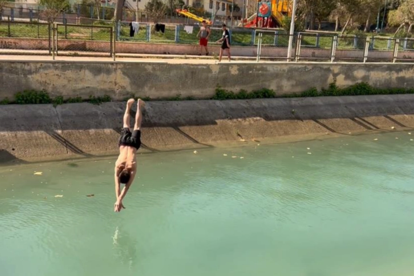 Mersin'in Tarsus ilçesinde son günlerde aşırı sıcaklardan bunalan çocuklar, tehlikeli ve yasak olmasına rağmen sulama kanallarında yüzerek serinliyor.Son günlerde hava sıcaklıklarının mevsim normallerinin üzerinde seyretmesi ve nemle beraber 30 dereceyi aştığı Mersin'de çocuklar, serinlemek için sulama kanallarında tehlikeye aldırış etmeden yüzüyor. Tarsus'un içerisinden geçen kanalda, ‘kanala girmek tehlikeli ve yasaktır’ uyarısına aldırış etmeden yüzen çocuklar, bazen de suya tehlikeli dalışlar da yapıyorlar. Yaşları 12 ile 15 arasında değişen çocuklar, sıcak günleri soğuk sulama kanallarında geçiriyor. Kanalda yüzmenin tehlikeli olduğunu bildiklerini söyleyen çocuklar, yüzmenin zevkli olduğunu ifade ediyorlar. Çocukların yüzdüğü kanalların kirli olması da dikkat çekiyor.