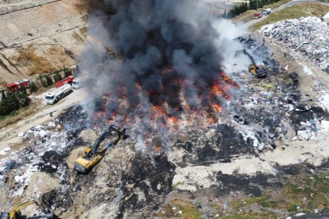 Tekirdağ Çorlu’da bulunan atık geri dönüşüm tesisinde büyük çaplı yangın meydana geldi. Yangın, kepçe ve itfaiye ekiplerinin müdahalesiyle kontrol altına alındı.Çorlu ilçesi Hatip Mahallesi Karatepe mevkiinde bulunan tesislerin açık döküm sahasında bulunan geri dönüşüm atıkları henüz bilinmeyen bir nedenle alev aldı. Yangın büyüyerek geniş alana yayıldı. Havaya yükselen kara dumanlar, ilçe merkezindeki birçok mahalleden de görüldü.Olay yerine çok sayıda itfaiye ve belediyeye ait yangın söndürme aracı sevk edildi. İş makinelerinin de müdahalesiyle yangın saatler sonra kontrol altına alındı.