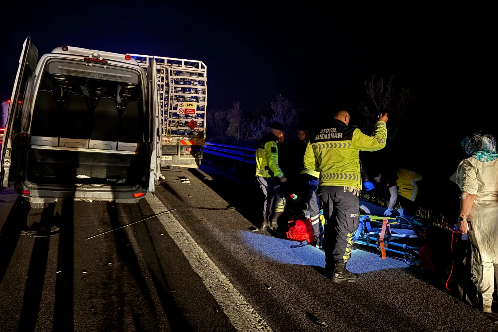 TEM Otoyolu’nun Bolu geçişinde yolcu minibüsüyle tüp yüklü kamyonun çarpışması sonucu meydana gelen kazada 16 kişi yaralandı.