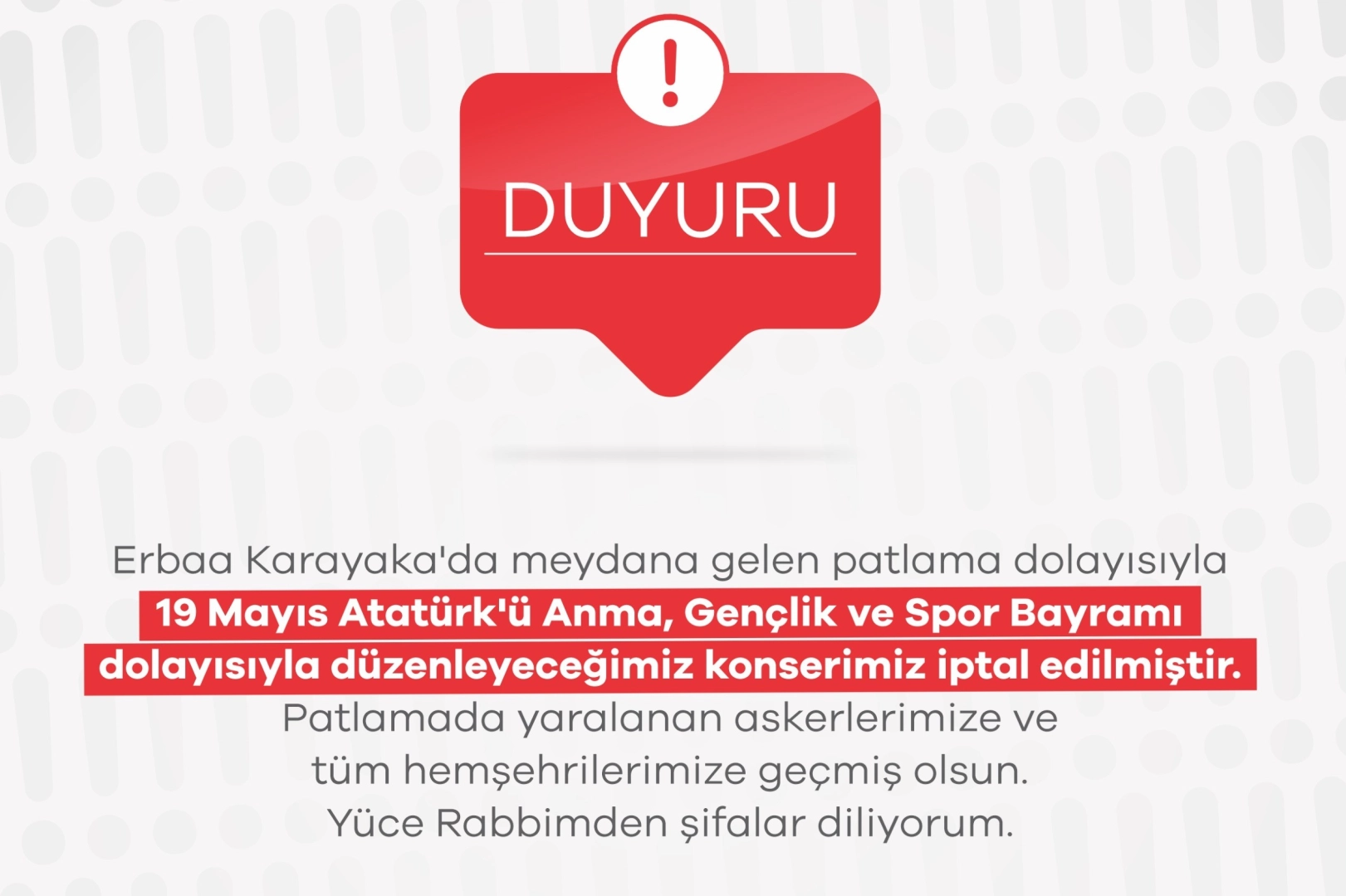 Tokat'ın Erbaa ilçesine bağlı Karayaka beldesi Hürmüzlü mahallesinde bulunan bir bağ evinde meydana gelen patlamada 5'i jandarma görevlisi 7 kişinin yaralandığı olay nedeniyle bugün 19 Mayıs Gençlik ve Spor Bayramı nedeniyle yapılması planlanan "Fener Alayı" yürüyüşü ertelendi. Ayrıca Tokat Belediye Başkanlığı tarafından yapılması planlanan konser de iptal edildi.