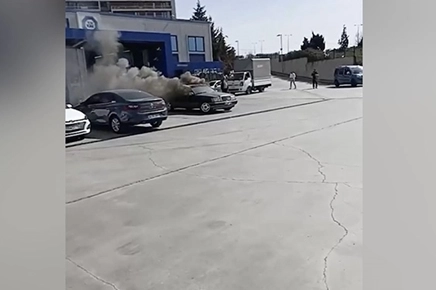 Tuzla'da, bir kişinin muayeneden geçemeyen otomobilini ateşe vermesi cep telefonuyla kaydedildi.Aydınlı Mahallesi'nde dün, araç muayene istasyonunda otomobili muayeneden geçemeyen Yavuz K. (52), görevliye tepki gösterdiği, aracını ateşe verip dumanlar çıktığı anları cep telefonuyla da kayıt altına aldı.