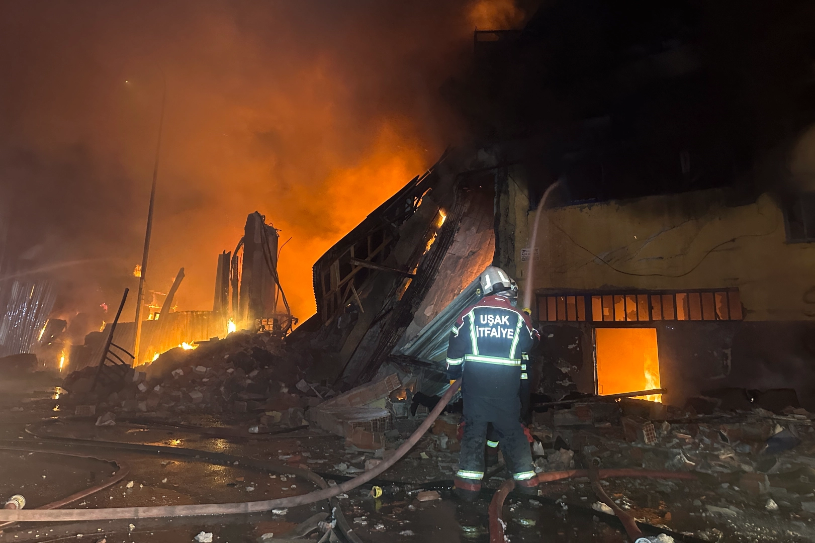 Uşak’ın Fevzi Çakmak Mahallesi 5. Çanlı Sokak’ta, bir tekstil deposu ile bitişiğindeki fabrikada dün gece çıkan yangın, kısa sürede tüm binayı sardı. İhbar üzerine olay yerine 112 Acil Sağlık, polis ve itfaiye ekipleri sevk edilirken, Uşak Orman İşletme Müdürlüğü ve İl Özel İdaresi’ne bağlı araçlar da söndürme çalışmalarına destek verdi. Polis ekipleri bölgede geniş güvenlik önlemleri alırken, yangın ekiplerin yoğun çalışması sonucunda kontrol altına alındı. Yangın bölgesine gelen Uşak Belediye Başkanı Özkan Yalım ve İl Emniyet Müdürü Mehmet Ali Kolcu incelemelerde bulundu. Yangında, fabrikanın duvarının çökmesi sonucu yaralanan itfaiye eri R.Ç. ile yangına müdahale etmek isterken vücudunda yanıklar oluşan fabrika sahiplerinden N.A., 112 Sağlık ekiplerince Uşak Eğitim ve Araştırma Hastanesi’ne kaldırıldı. Soğutma çalışmalarının sürdüğü fabrikada ve depoda büyük hasar meydana gelirken, her iki yerde kullanılmaz hale geldi.