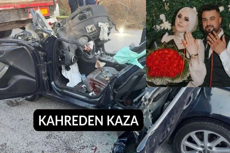 Kaza, Bursa-İzmir yolu Nilüfer ilçesi Başköy yakınlarında saat 04.30 sıralarında meydana geldi. Yasin Altınkaynak (27) idaresindeki 16 YA 165 plakalı lüks otomobil, sürücüsünün direksiyon hakimiyetini kaybetmesiyle önünde seyir halinde olan Y.A yönetimindeki 45 ADU 021 çekici plakalı TIR’a çarptı. Kazada sürücü Yasin Altınkaynak ve yolcu konumunda bulunan nişanlısı Betül Şalvarcıoğlu dorsede sıkışarak hayatını kaybetti. Düğün hazırlığı yapan çiftin düğün alışverişinden döndüğü öğrenildi. Jandarma ve bölge trafik ekipleri olayla ilgili tahkikat başlattı.