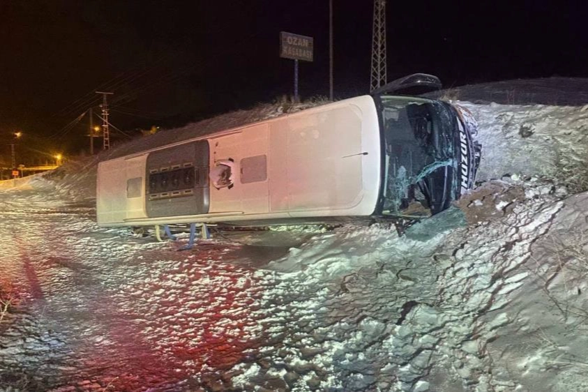 Sivas'tan Ankara istikametine giden bir yolcu otobüsü yoldaki buzlanma nedeniyle Yozgat'ta devrildi. Meydana gelen kazada 5 kişi yaralandı.Edinilen bilgiye göre, kaza Saraykent ilçesi D-200 Karayolu üzeri Ozan Beldesi mevkiinde meydana geldi. Sivas'tan Ankara'ya gitmekte olan M.T. idaresindeki Huzur Turizme ait Setra marka otobüs, buzlanmanın etkisiyle virajı alamayarak şarampole devrildi. Kazada, otobüs sürücüsü M.T. ile birlikte yolcular K.K., A.K., E.E., Y.S. yaralandı. Yaralılardan otobüs sürücüsü M.T.'nin Yozgat Şehir Hastanesi'nde tedavi altına alınırken yolcuların ise yapılan ilk müdahalenin ardından taburcu edildiği öğrenildi. Kaza ile ilgili inceleme başlatıldı.