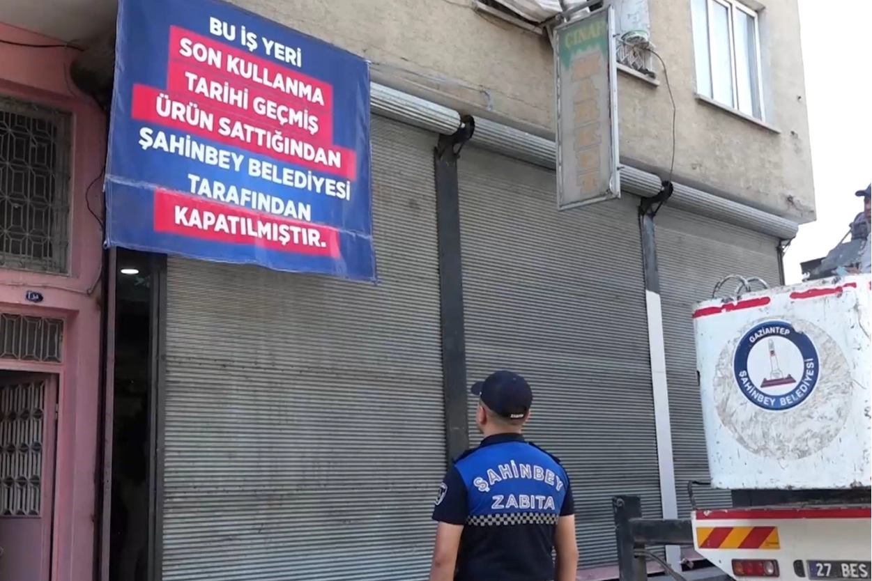 Gaziantep'te tarihi geçmiş ürün sattığı için işlem yapmak isteyen zabıta ekiplerine saldıran esnaf tutuklandı. Olay sonrası tekrar denetim yapılan iş yerinde 7 kalemde 418 kilogram tarihi geçmiş ürün tespit edildi, denetim sırasında şoke eden görüntüler ortaya çıktı. Şahsın iş yeri belediye ekiplerince kapatıldı.