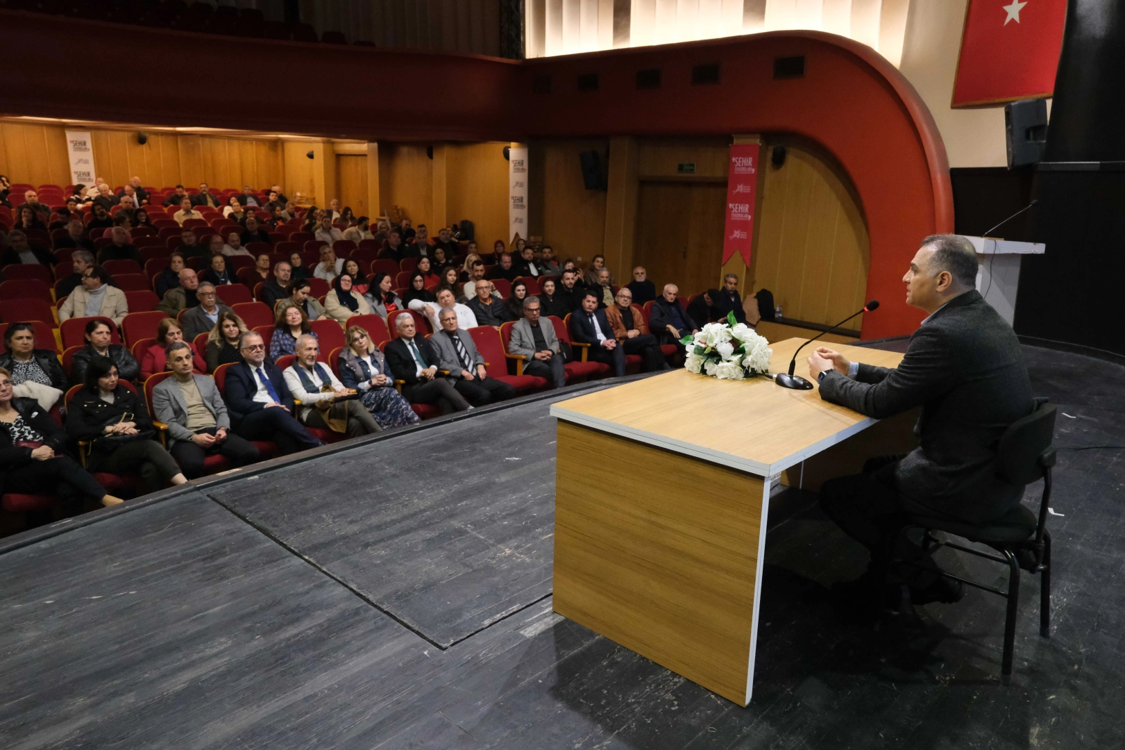 Prof. Dr. Baykan, Kalp Damar Hastalıkları, erken belirtiler, risk faktörleri ve korunma yolları hakkında bilgilendirmede bulunurken, katılımcıların sorularını da yanıtladı.