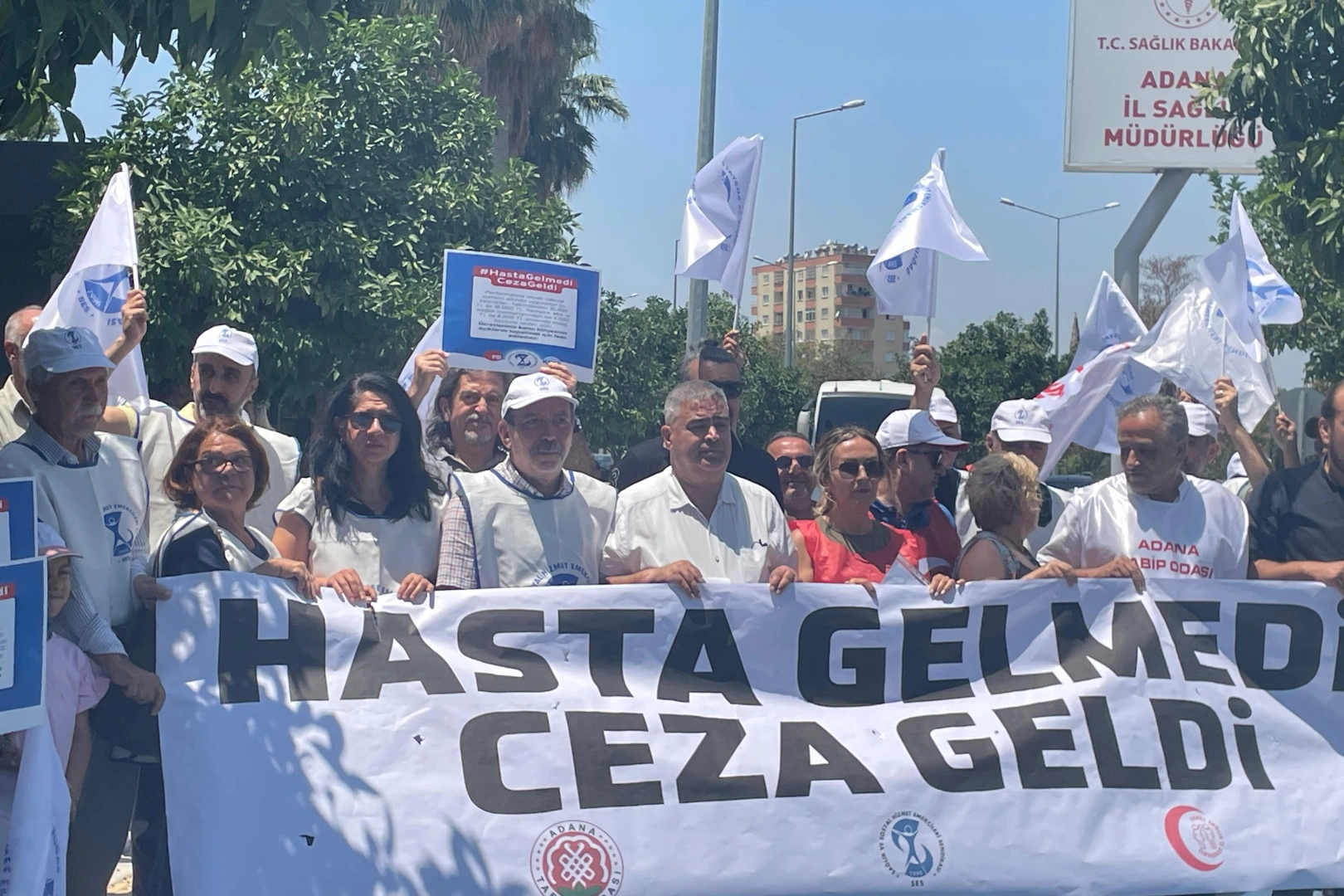Adana Tabip Odası, Sağlık ve Sosyal Hizmet Emekçileri Sendikası (SES) ve Genel Sağlık-İş üyesi sağlık çalışanları, Adana İl Sağlık Müdürlüğü önünde bir araya gelerek, “muayeneye gelmeyen hasta” gerekçesiyle aile hekimlerinin maaşlarından yapılan kesintiler hakkında basın açıklaması yaptı. Açıklamayı katılanlar adına Adana Tabip Odası Başkanı Uzm. Dr. Özden Polatöz okudu. Uzm. Dr. Özden Polatöz, uygulamanın hem sağlık çalışanlarının emeğini yok saydığını hem de halk sağlığını tehlikeye attığını belirtti.