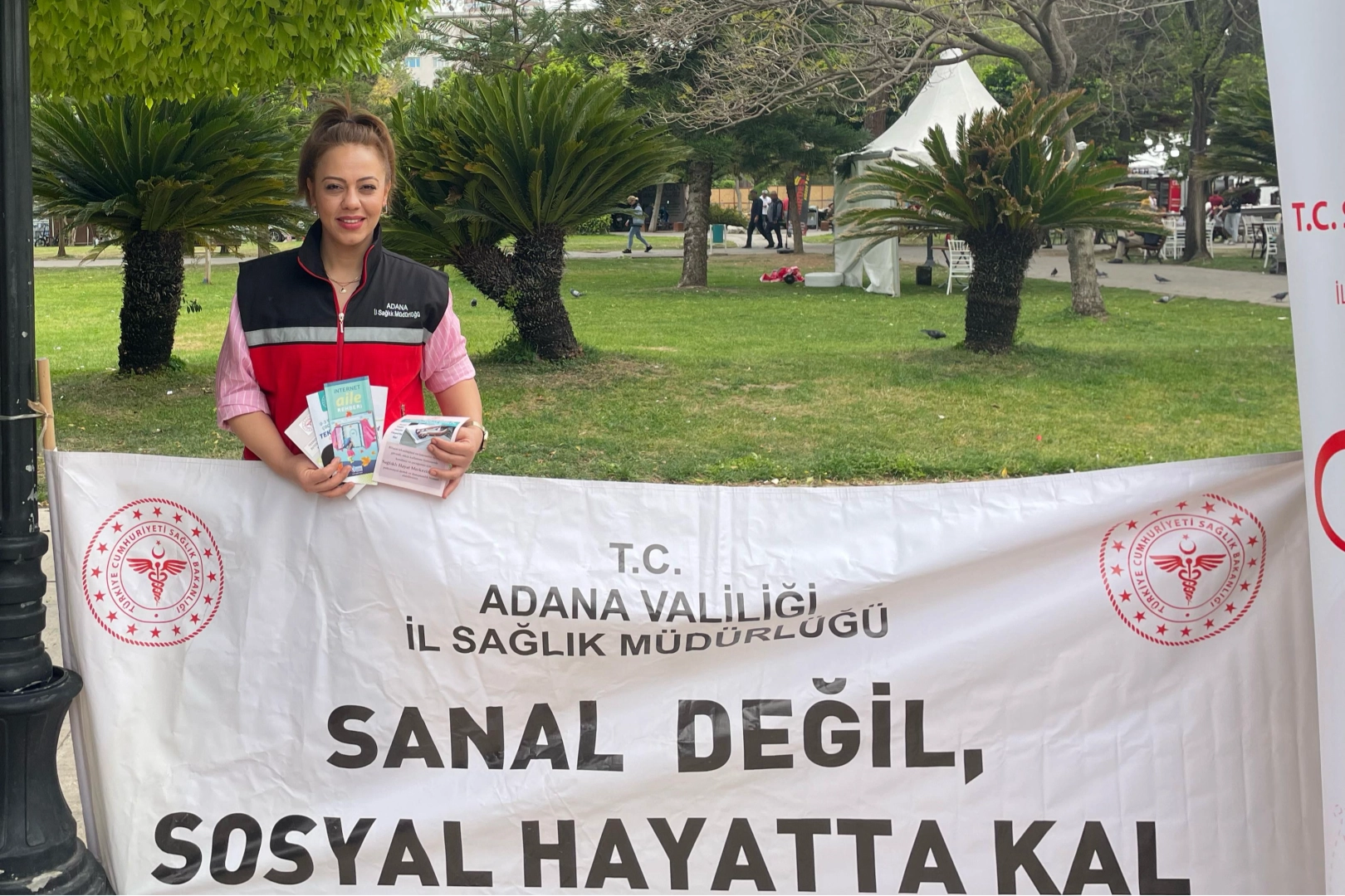 "Sağlıklı ebeveyn olmak, seçeneğine iyi bir model olmamızı sağlar"Adana İl Sağlık Müdürlüğü Halk Sağlığında görevli Psikolog Cavidan Ebru Kızıl bu yılki beslenmede stantta teknoloji üzerine bilgi vererek şunu söyledi: “Bugün Atatürk Parkında kurduğumuz standa konumuz davranışsal etkileşim. Sağlık Bakanlığı özellikle son yıllardaki teknoloji kullanmak. Teknolojinin güvenli ve sağlıksız kullanımı ilerleyen zamanlarda örnek vermek yeme, kumar oynadığı gibi geliyor. Daha sonra insanların sosyalini etkili etkileyeceğini söyledi. Bu sene ki sloganımız 'Sanalda değil, reelde kal' ile hareket ediyoruz. Dijital dünyada bir olmak üzere olmak Ana temamız. Bizler sağlıklı, ebeveyn olarak davranan kişiler olarak teknolojik açıdan iyi bir model olabiliriz.”