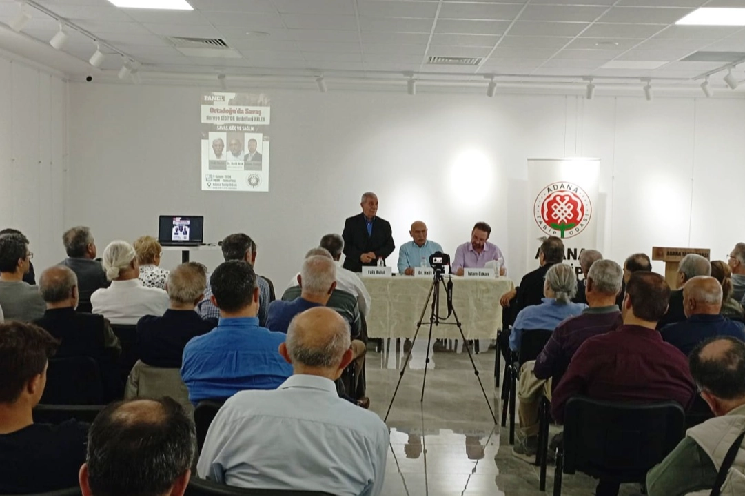 Adana Tabip Odası tarafından düzenlenen “Ortadoğu’da Savaş Nereye Gidiyor, Hedefleri Neler, Savaş, Göç ve Sağlık” başlıklı panel, büyük bir katılımla gerçekleştirildi. Panelin açılış konuşmasını Adana Tabip Odası Başkanı Uzm. Dr. Özden Polatöz yaptı. Etkinlik öncesinde, panelistlerden Gazeteci Faik Bulut katılımcılar için kitaplarını imzalayarak kısa bir söyleşi gerçekleştirdi. Dr. Polatöz, "Savaşlar, sağlık sistemini çökertmekte ve sağlık hizmetlerine erişimi ciddi şekilde kısıtlamaktadır" diyerek savaşın sağlık üzerindeki olumsuz etkilerine dikkat çekti. Panelde Gazeteci Faik Bulut ve İslam Özkan, Ortadoğu’daki savaşların toplumsal ve sağlık üzerindeki etkilerini geniş bir perspektifle değerlendirdiler.