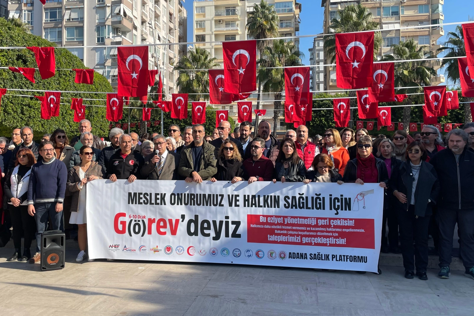 “Ağrıkesici ve antibiyotik yazma kısıtlaması, hekimlerin bağımsızlığına müdahaledir”Adana Sağlık Platformu Sözcüsü Uzm. Dr. Özden Polatöz iş bırakma eyleminde yaptığı açıklamada, Aile Hekimliği Yönetmeliği'nin sağlık çalışanları ve halk için zararlı olduğunu belirterek şunları söyledi: “Sağlık Bakanlığı’na bu kez Ulu Önderimiz Mustafa Kemal Atatürk’ün huzurunda sesleniyoruz; Halkımızın ve sağlık çalışanlarının yararına olmayan Eziyet Yönetmeliğini geri çekin. Tüm sağlık bileşenleri olarak bizler aile sağlığı merkezlerinde çalışan hekim, ebe, hemşire ve sağlık emekçileri olarak mesleki yeterliliklerimiz ve deneyimlerimizle para, performans, cezalandırma baskısı olmadan halkın sağlık sorunlarını çözmek istiyoruz. Yoğun iş yükü ile günde 100 hastaya, her birine sadece 3 dakika ayırarak işlem yapmak yerine nitelikli bir sağlık hizmeti için her hastaya en az 10 dakika zaman ayırabilmeyi istiyoruz. Hastalarımızın muayene, takip, tedavi, aşı, izlem, tarama ve bilgilendirilmesi için yeterli zaman ve olanak talep ediyoruz. Hastalarımızın müşteri, puan, katsayı olarak görülmesini değil, insan olarak değer görmesini istiyoruz. Hastalarımıza tedavisi için yazılması gereken ağrıkesici, mide koruyucu ve antibiyotik gibi ilaçların yazılmasının kısıtlanması hekimlerin mesleki bağımsızlığına müdahale olduğu gibi hastalarımızın tedavi hakkının elinden alınmasıdır. Bu uygulamayı kabul etmiyoruz. Aile sağlığı merkezlerinde raporların ücretli olması, ücretsiz olan birinci basamak hizmetlerinin sonu demektir. Aile sağlığı merkezlerinde çalışan hekim, ebe, hemşire ve sağlık emekçileri olarak, sağlıkta ticaretin yenidoğan skandalında gördüğümüz gibi ölüm getirdiğini çok iyi biliyor ve hastalarımıza ücretsiz, nitelikli ve erişilebilir bir sağlık hizmeti sunmak istiyoruz.”